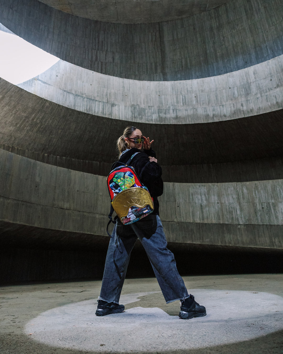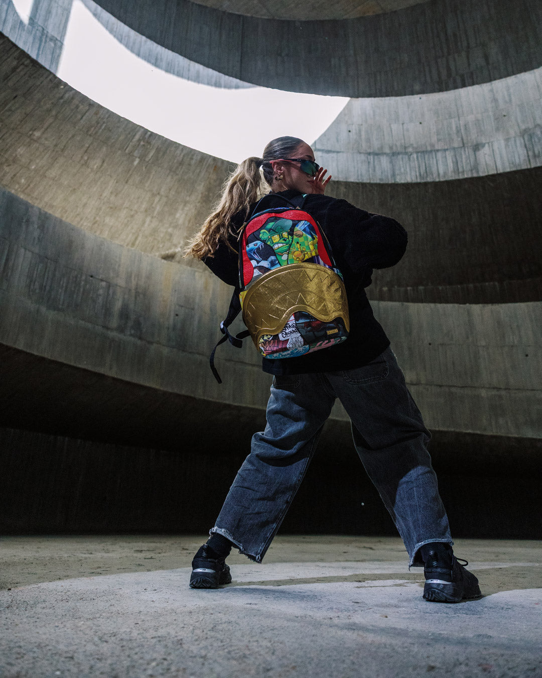 Dimensions: 18″ x 6″ x 11.5″ • Front zipper pocket • Side pockets • Zippered Stash pocket • Separate velour sunglass compartment • Ergonomic mesh back padding • Adjustable Straps for custom sizing • Gold zippers with metal hardware • Metal “Sprayground Authentic” badge • Slide through back sleeve connects to carry-on luggage to free your hands