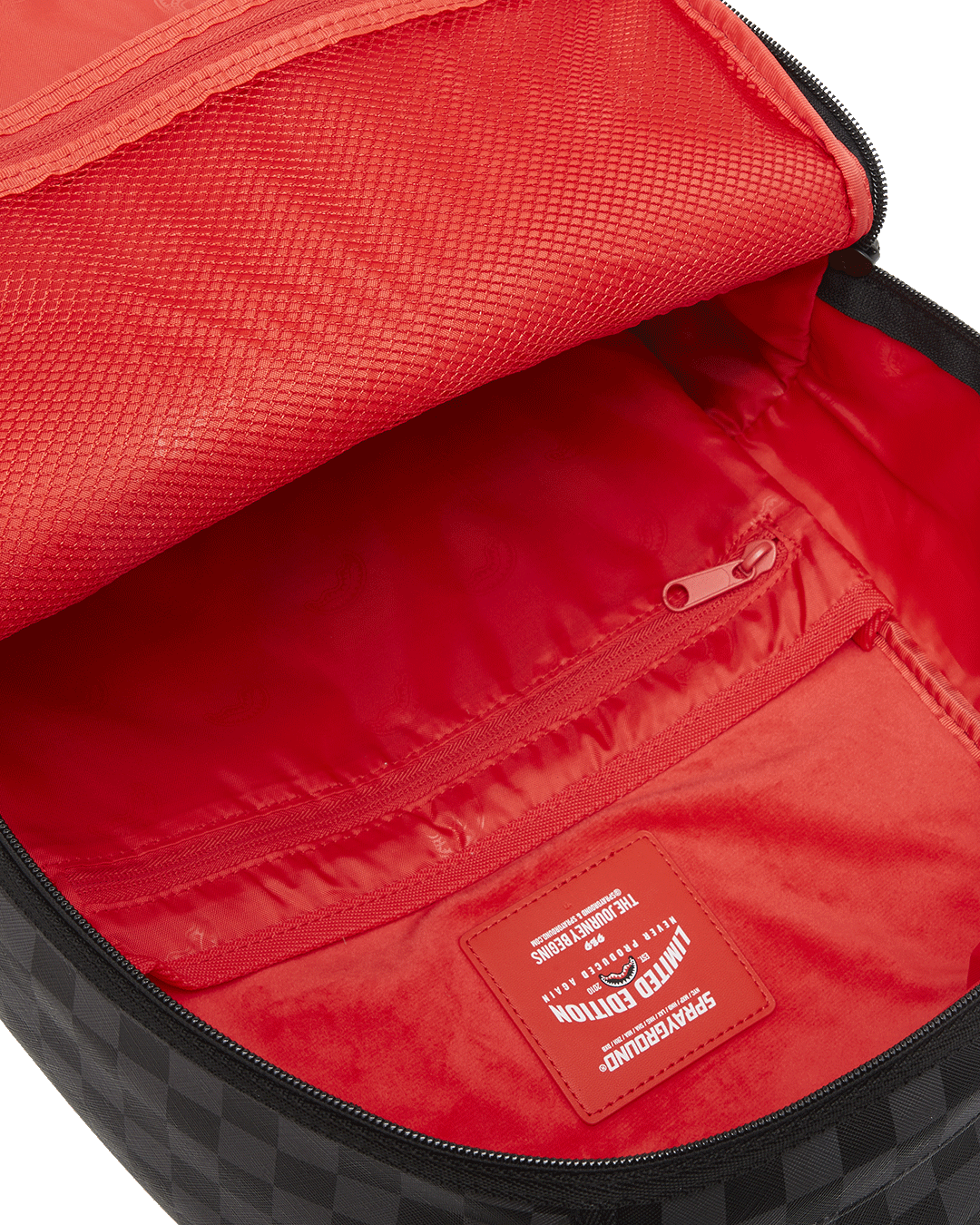 Dimensions: 18″ x 6″ x 11.5″ ? Front zipper pocket ? Side pockets ? Zippered Stash pocket ? Separate velour sunglass compartment ? Ergonomic mesh back padding ? Adjustable Straps for custom sizing ? Gold zippers with metal hardware ? Metal “Sprayground Authentic” badge ? Slide through back sleeve connects to carry-on luggage to free your hands