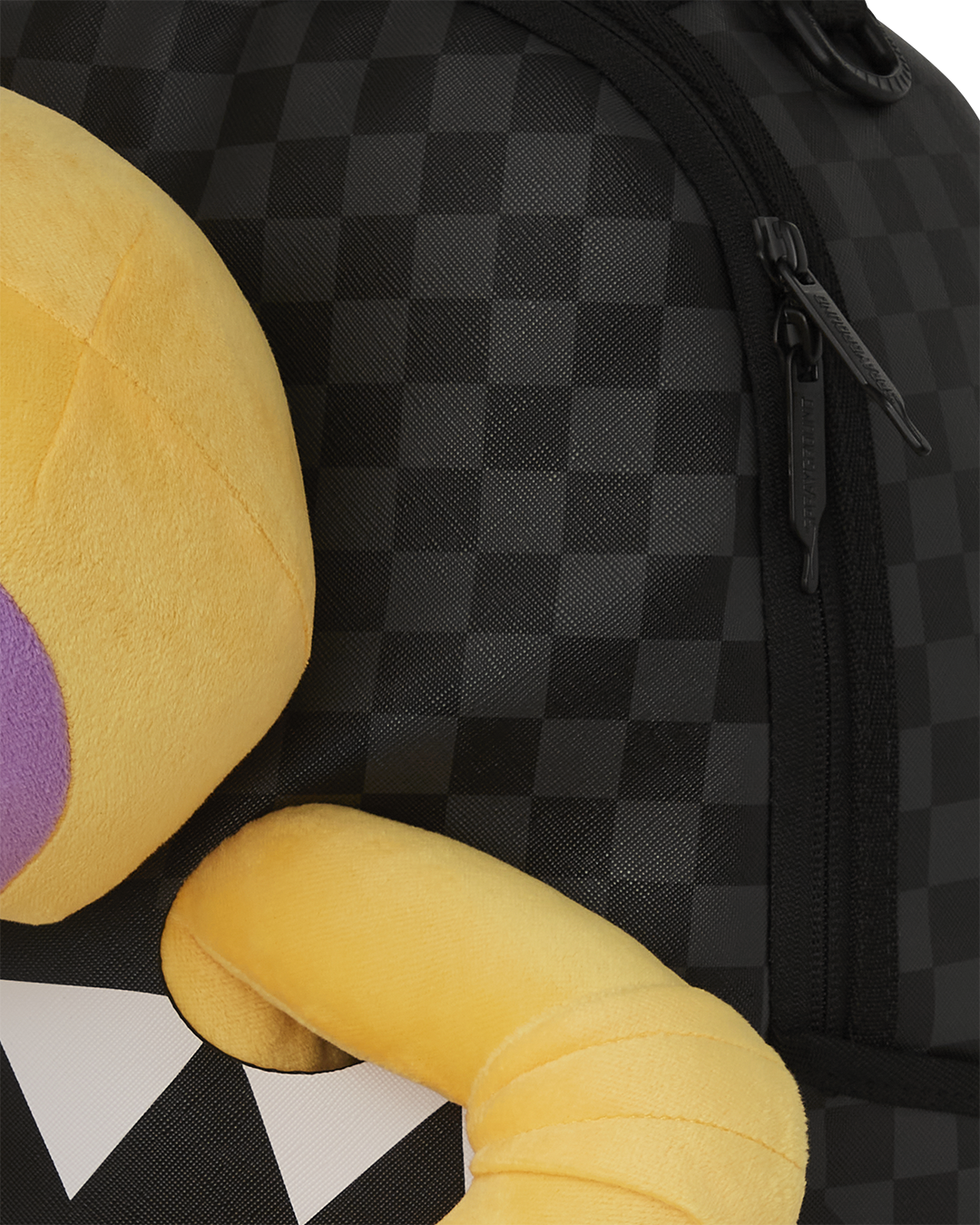 PVC backpack with fully functional main pocket. Astromane plush is not removable.