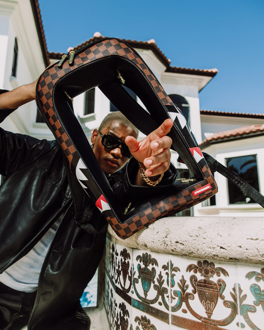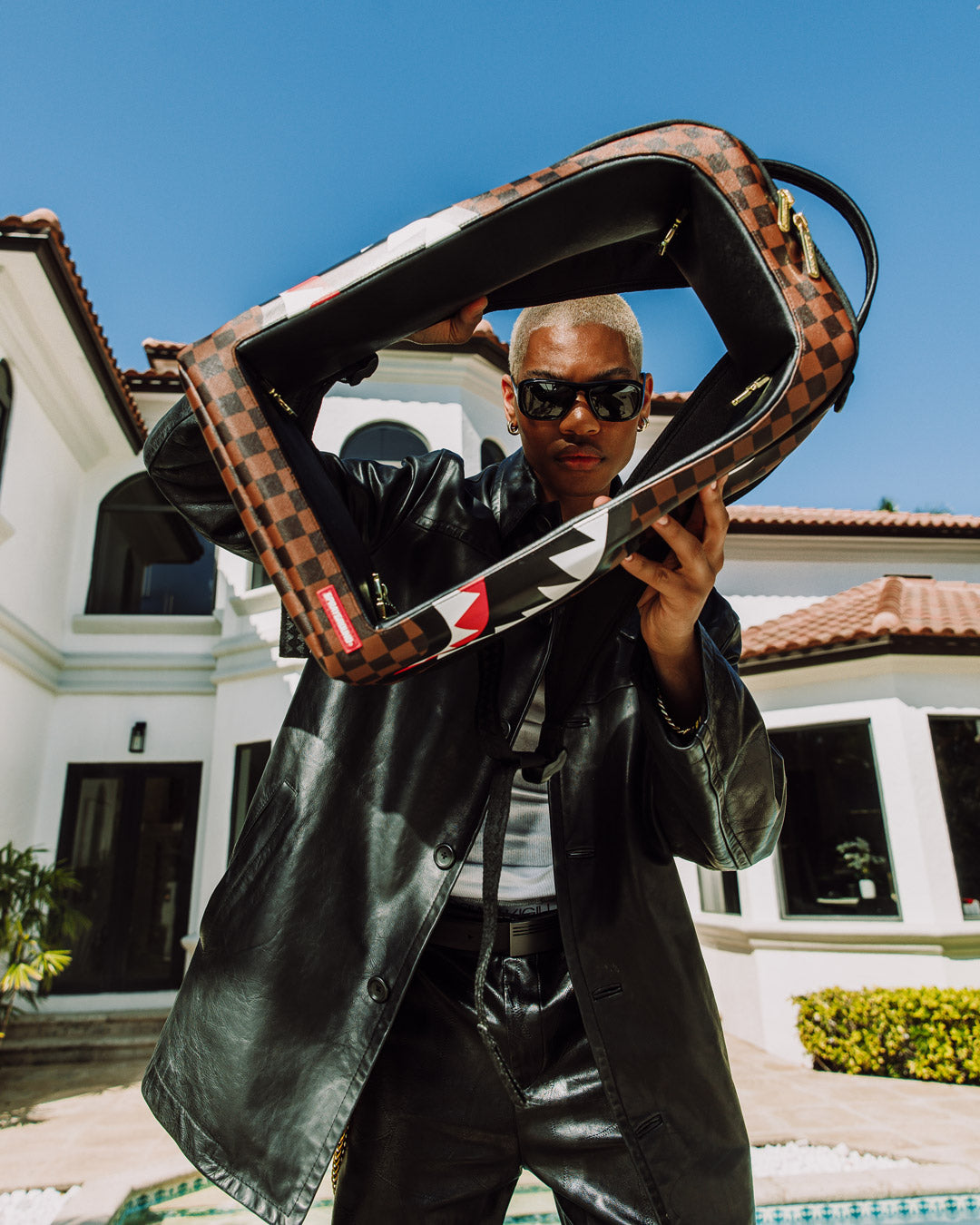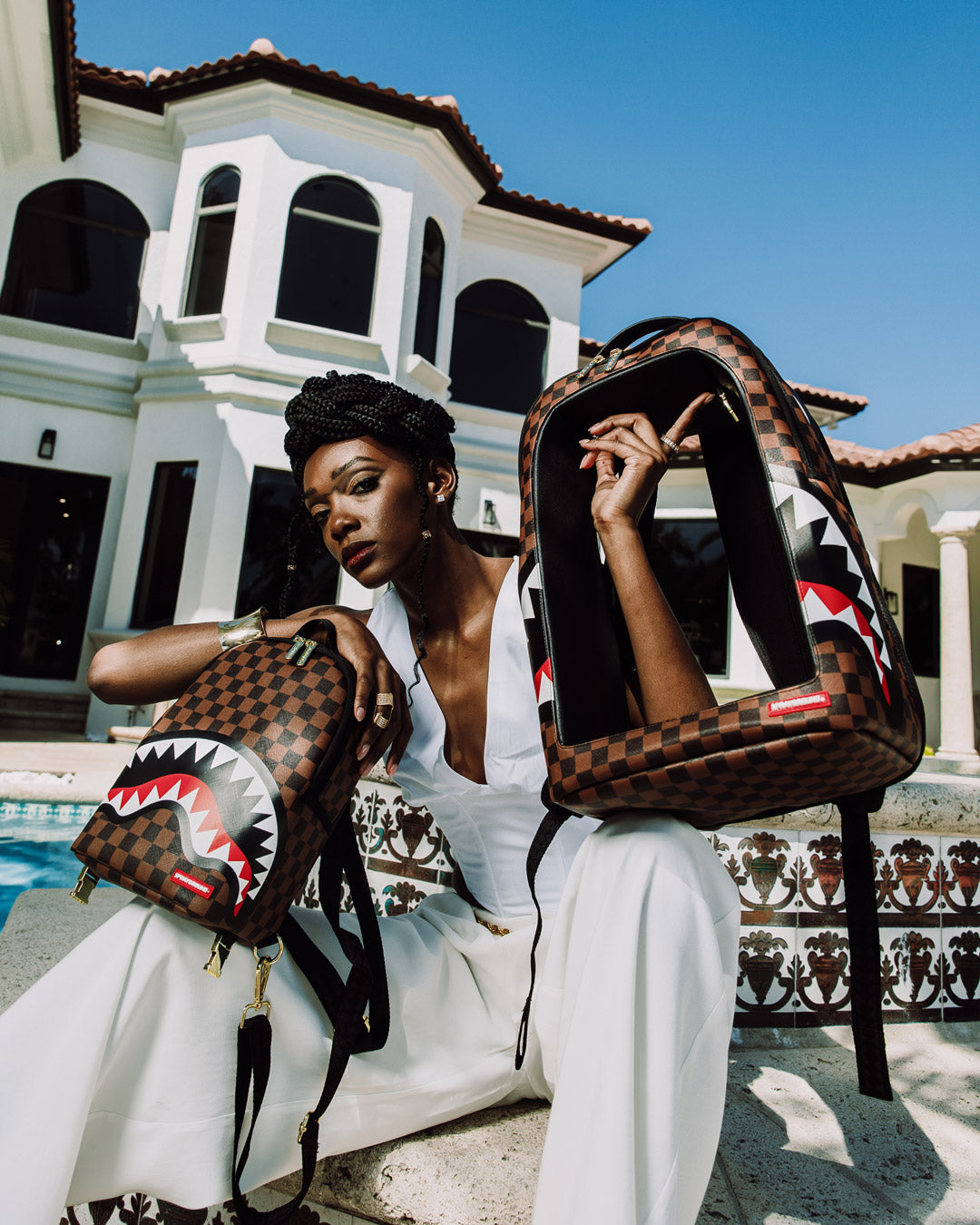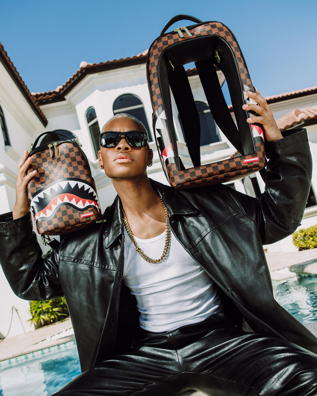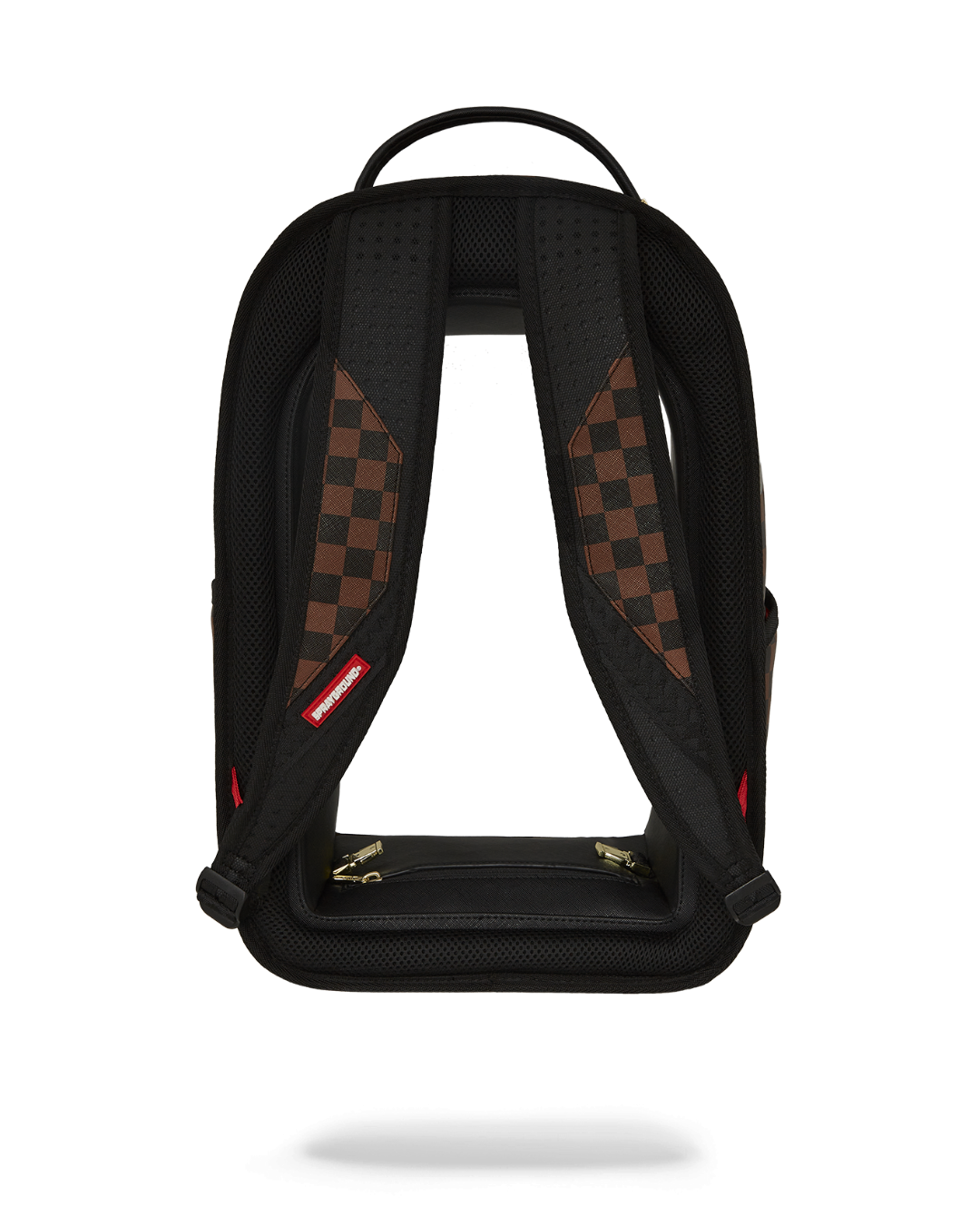 Dimensions: 18″ x 6″ x 11.5″ ? Front zipper pocket ? Side pockets ? Zippered Stash pocket ? Separate velour sunglass compartment ? Ergonomic mesh back padding ? Adjustable Straps for custom sizing ? Gold zippers with metal hardware ? Metal “Sprayground Authentic” badge ? Slide through back sleeve connects to carry-on luggage to free your hands