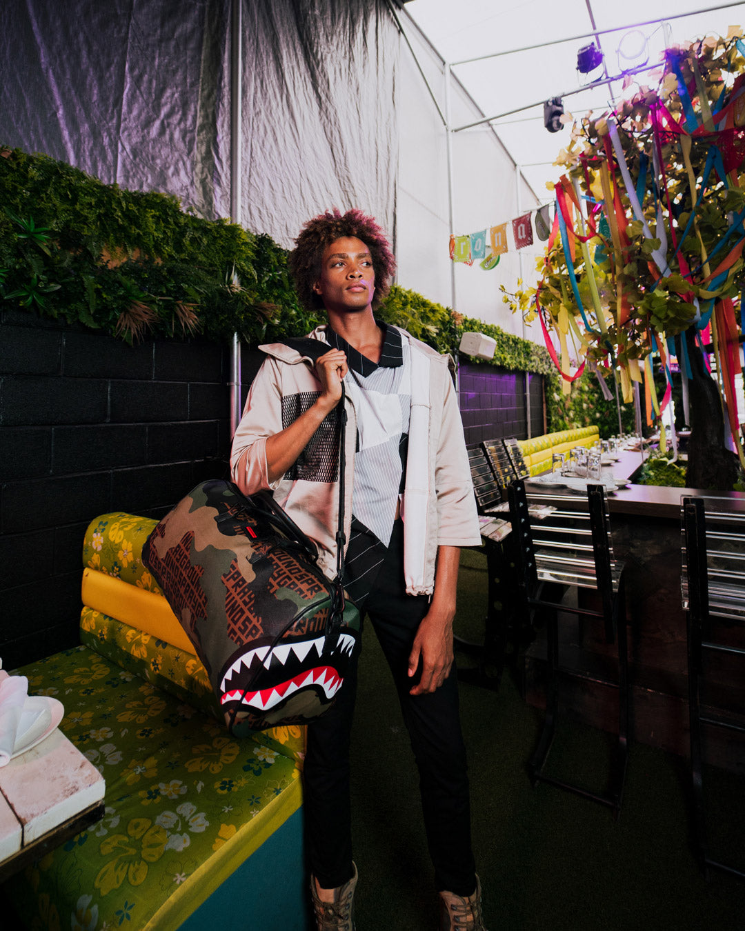 Dimensions: 20″ x 10″ x 10.75″ • Metal zipper pocket• Back Zippers •Zippered sneaker pocket • gold zippers • Adjustable Straps for custom sizing •Metal Zippers with Metal Hardware • bag of Sprayground money