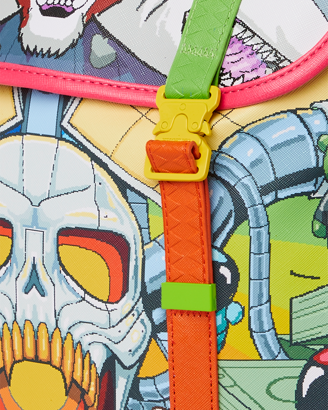 Dimensions: 18″ x 6″ x 11.5″ • Top Flap opening w/ adjustable metal enamel buckles and drawstring closure • Two side cargo pockets with metal enamel buckles and drawstring closures • Zippered Stash pocket • Ergonomic mesh back padding • Adjustable Straps for custom sizing • Embossed logo on back strap