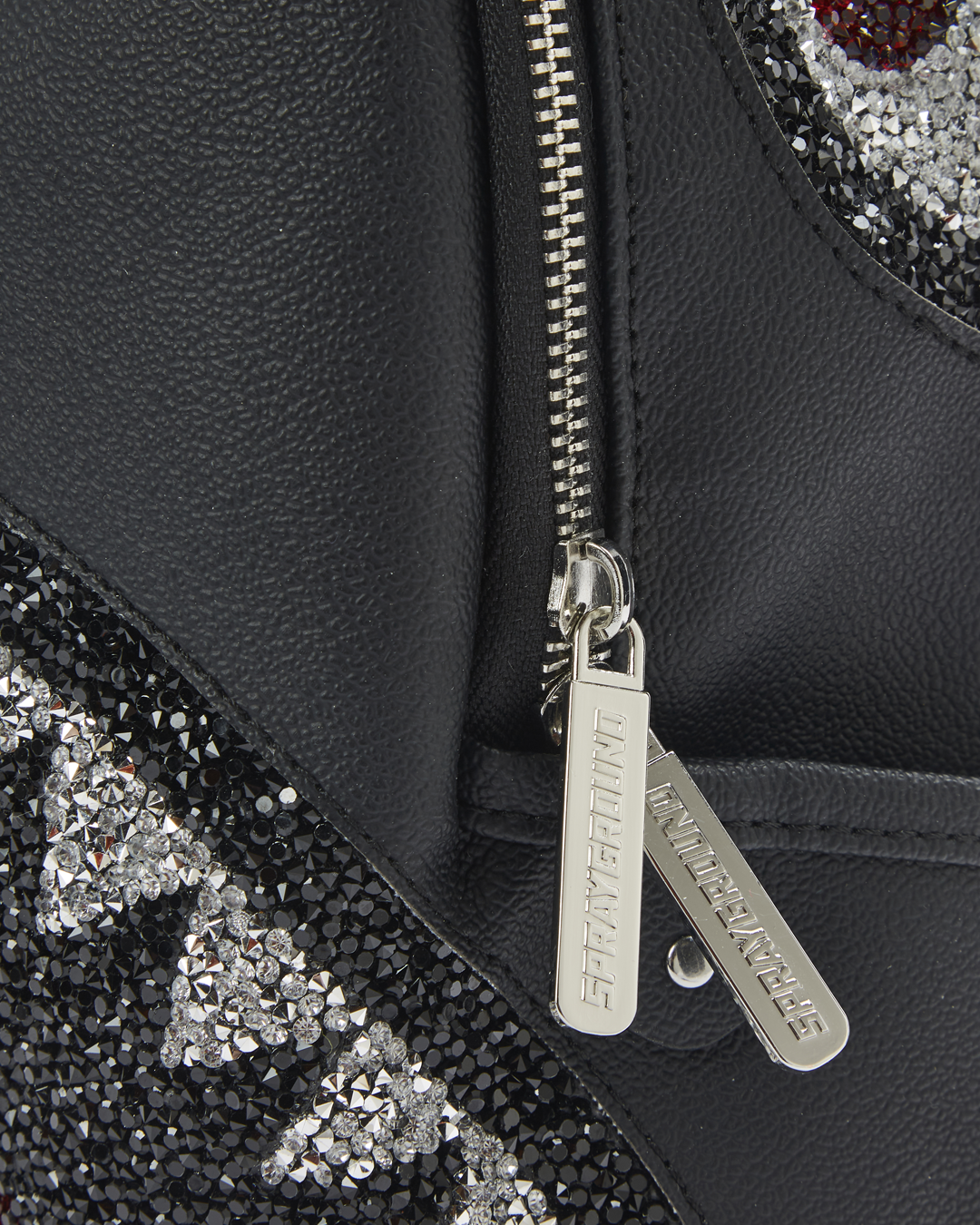 Dimensions: 10″ x 5″ x 11.5″ • Two large main zippered compartments • Side pockets • Zippered Stash pocket • Adjustable straps for custom sizing • Gold zippers with metal hardware