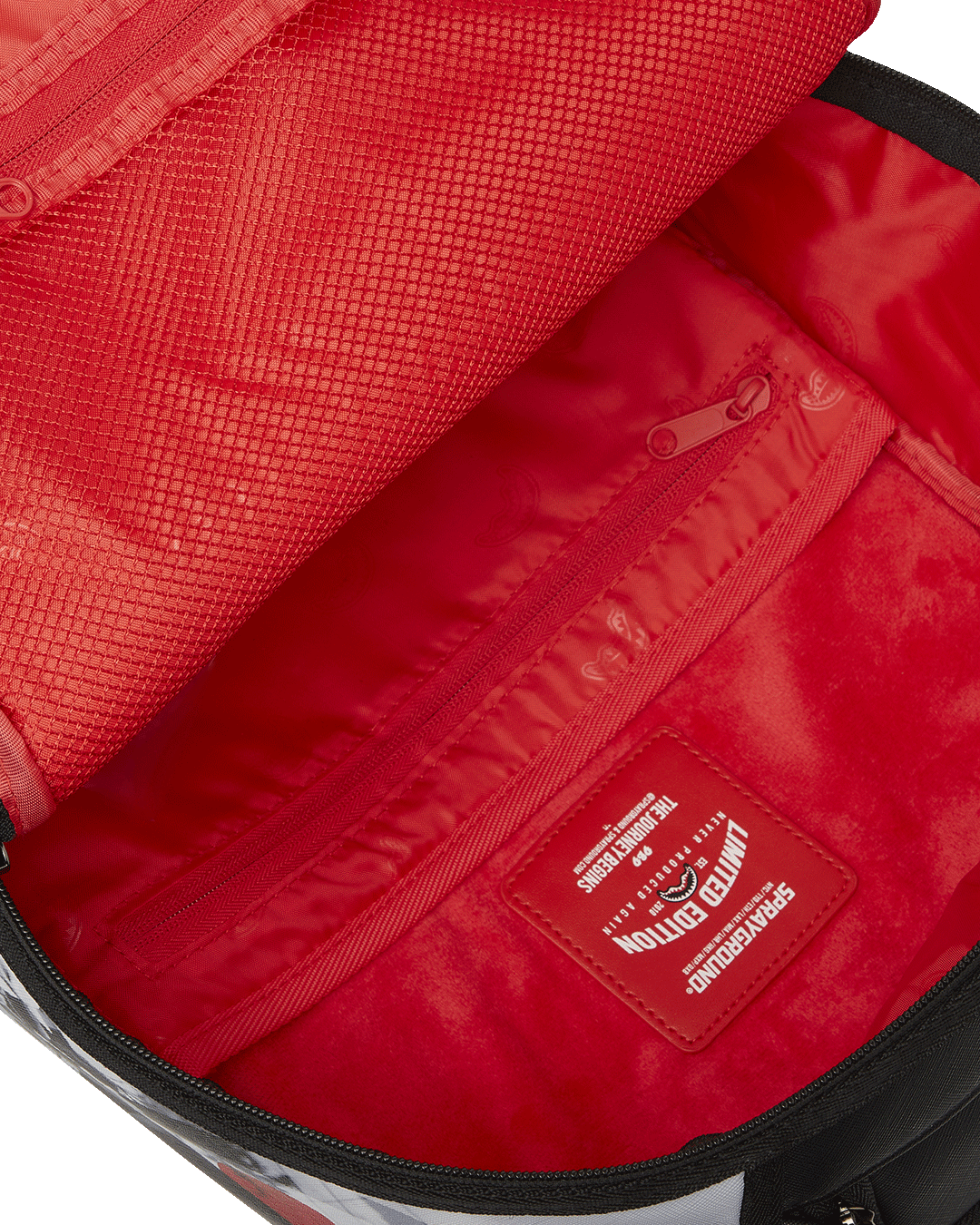 Dimensions: 18″ x 6″ x 11.5″ • Front zipper pocket • Side pockets • Zippered Stash pocket • Separate velour sunglass compartment • Ergonomic mesh back padding • Adjustable Straps for custom sizing • Gold zippers with metal hardware • Metal “Sprayground Authentic” badge • Slide through back sleeve connects to carry-on luggage to free your hands