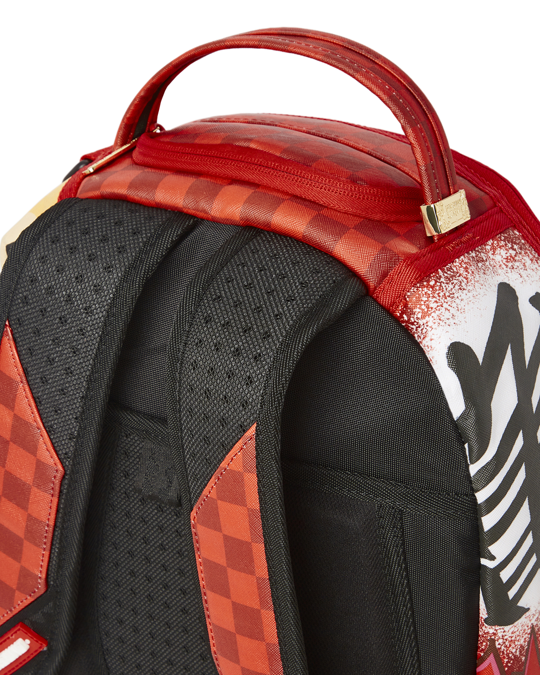 Dimensions: 18″ x 6″ x 11.5″ • Front zipper pocket • Side pockets • Zippered Stash pocket • Separate velour sunglass compartment • Ergonomic mesh back padding • Adjustable Straps for custom sizing • Red zippers with metal hardware • Metal “Sprayground Authentic” badge • Slide through back sleeve connects to carry-on luggage to free your hands