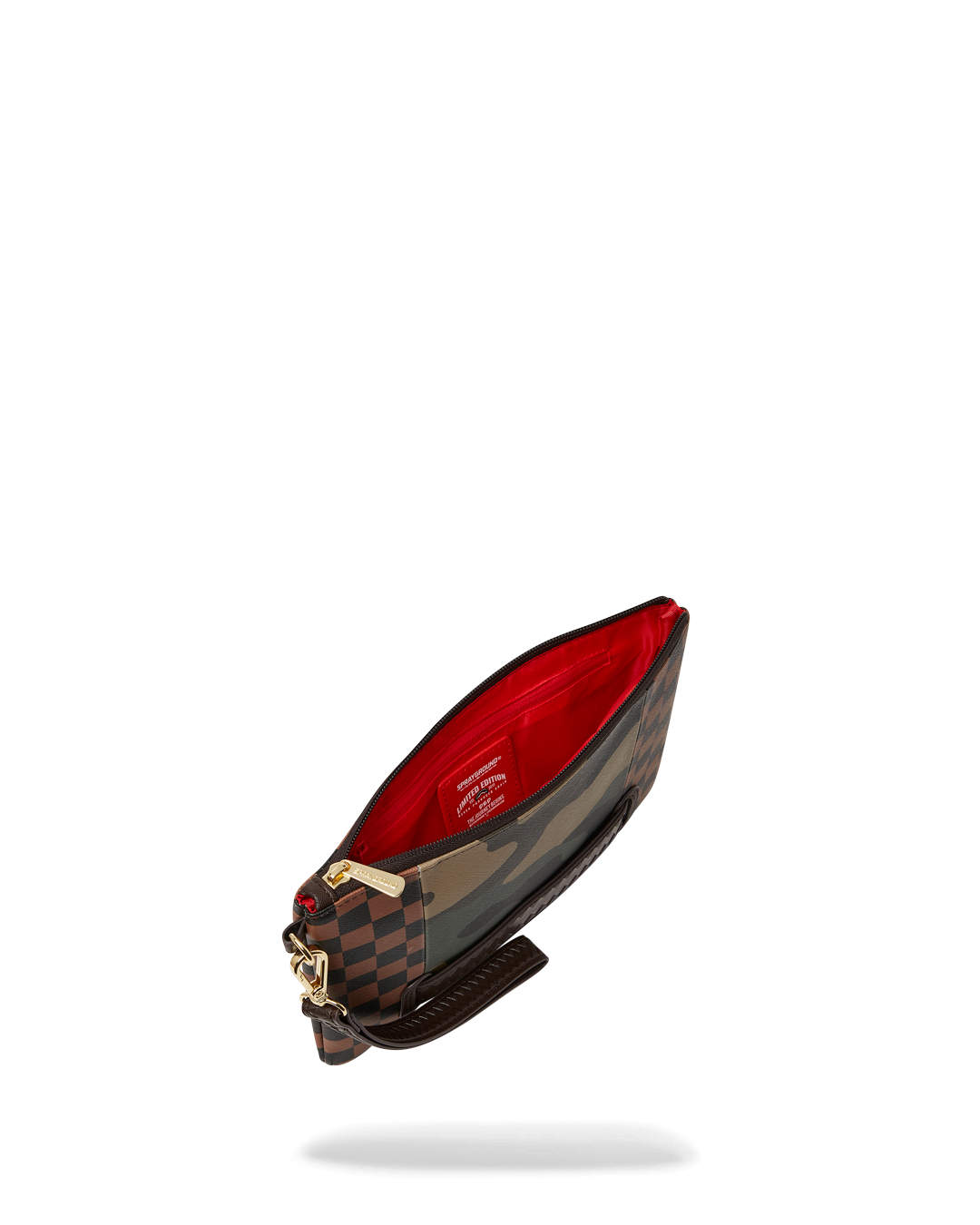 Pouch with removable wristlet strap, Handle on front panel, Zip Closure, secret stash pocket on side seam