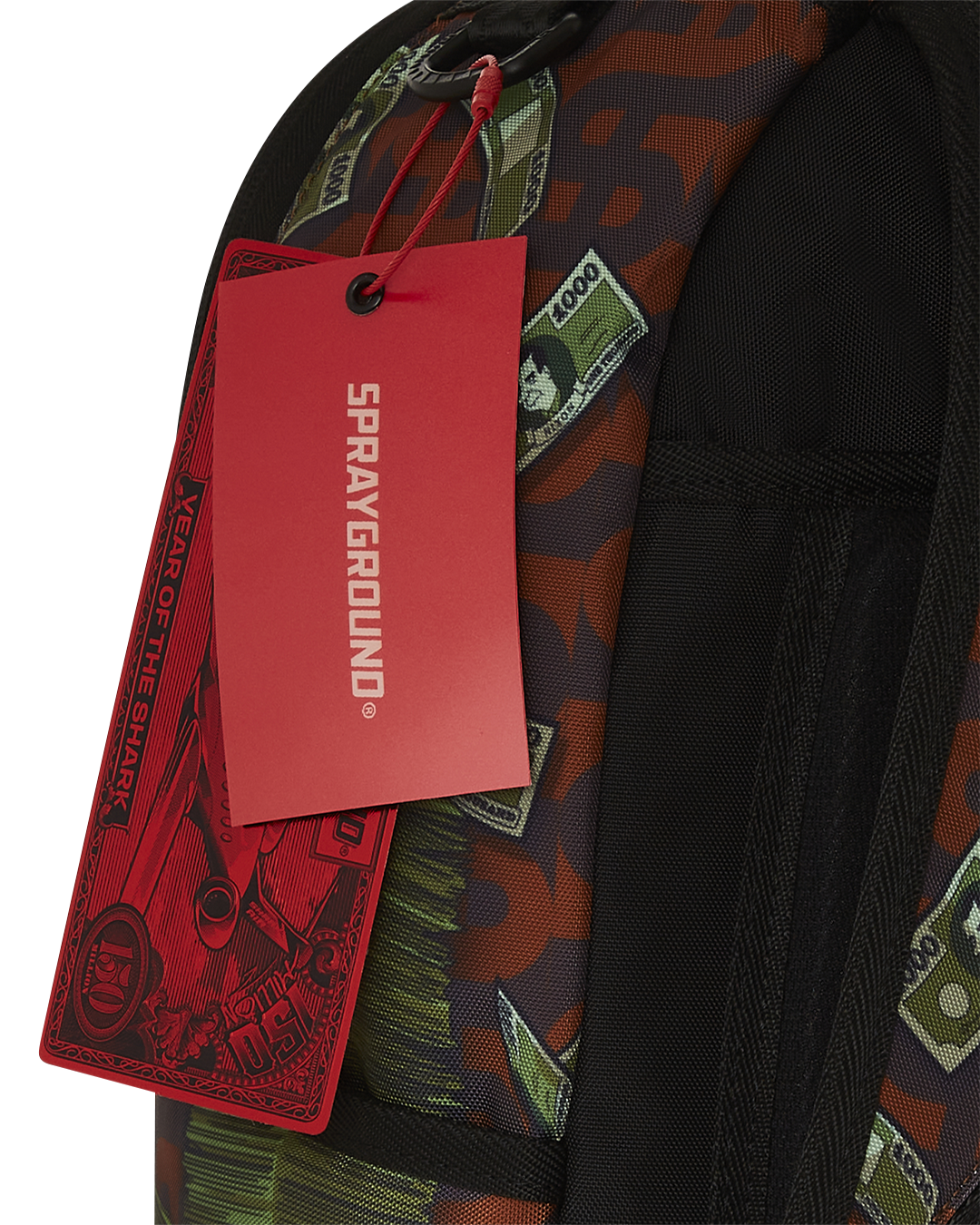 Dimensions: 18″ x 6″ x 11.5″ • Front zipper pocket • Side pockets • Zippered Stash pocket • Separate velour sunglass compartment • Ergonomic mesh back padding • Adjustable Straps for custom sizing • Gold zippers with metal hardware • Metal “Sprayground Authentic” badge • Slide through back sleeve connects to carry-on luggage to free your hands