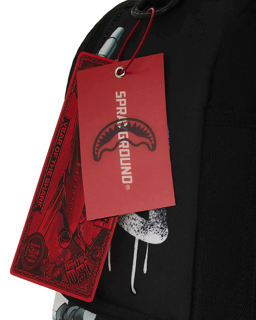 Dimensions: 18″ x 6″ x 11.5″ • Front zipper pocket • Side pockets • Zippered Stash pocket • Separate velour sunglass compartment • Ergonomic mesh back padding • Adjustable Straps for custom sizing • Gold zippers with metal hardware • Metal “Sprayground Authentic” badge • Slide through back sleeve connects to carry-on luggage to free your hands