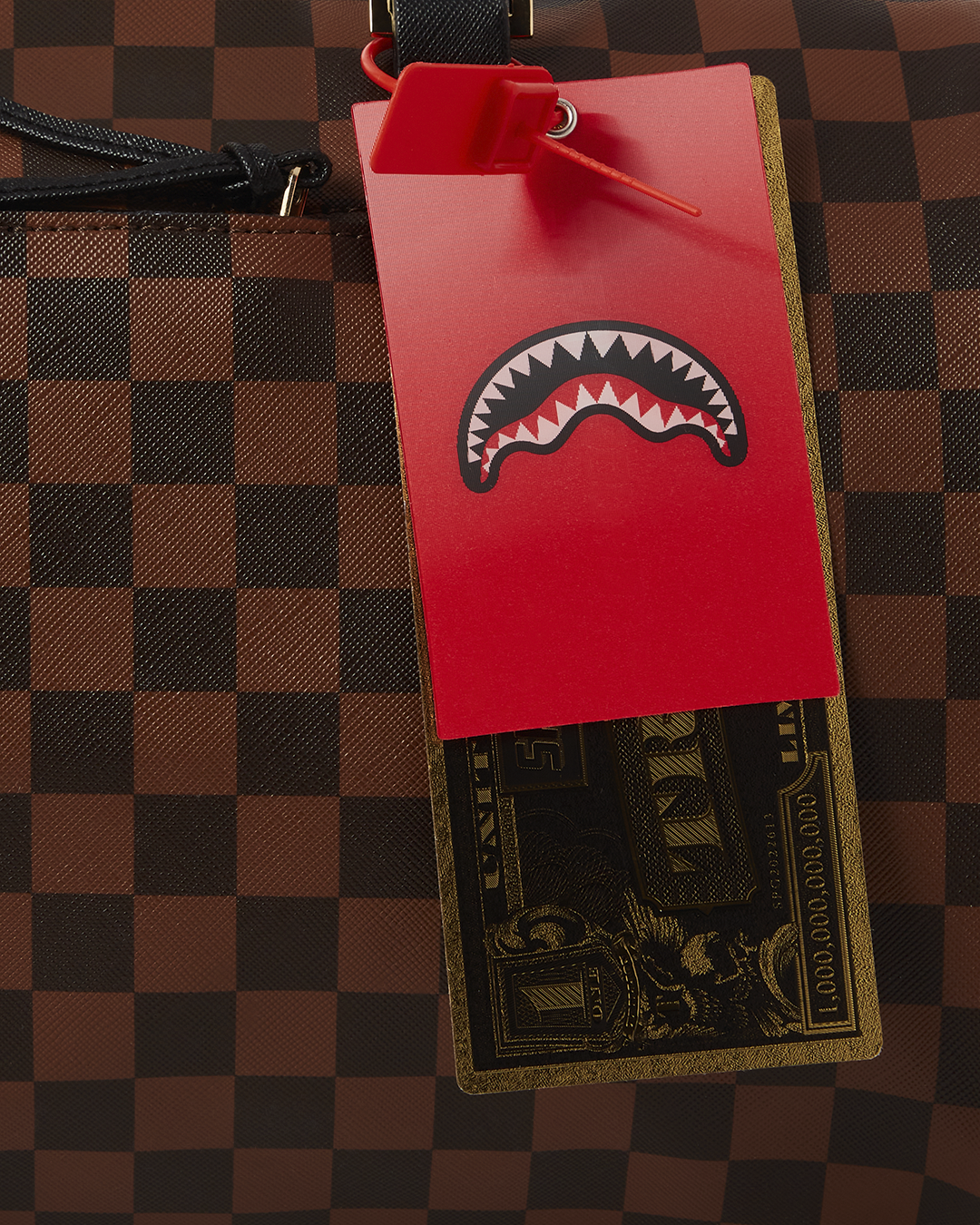 Dimensions: 8″ x 7.5″ x 13″ • Metal zipper pocket• Back Zippers •Zippered sneaker pocket • gold zippers • Adjustable Straps for custom sizing •Metal Zippers with Metal Hardware • bag of Sprayground money