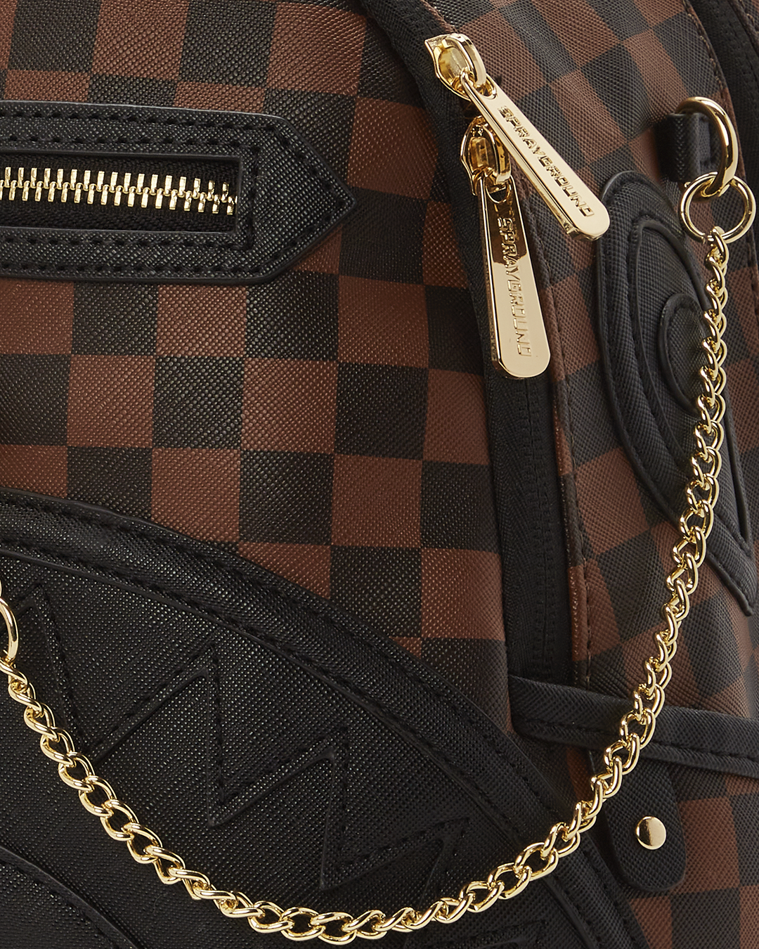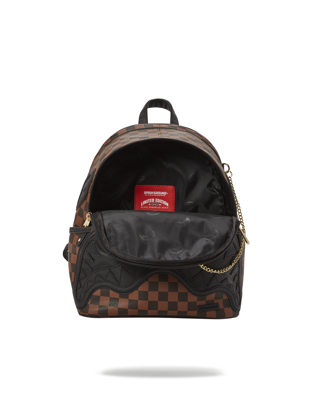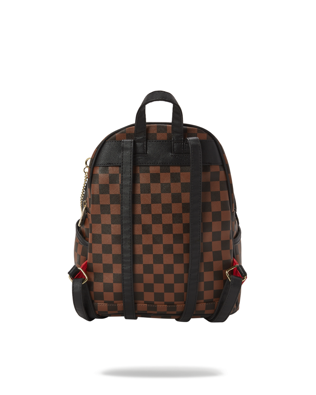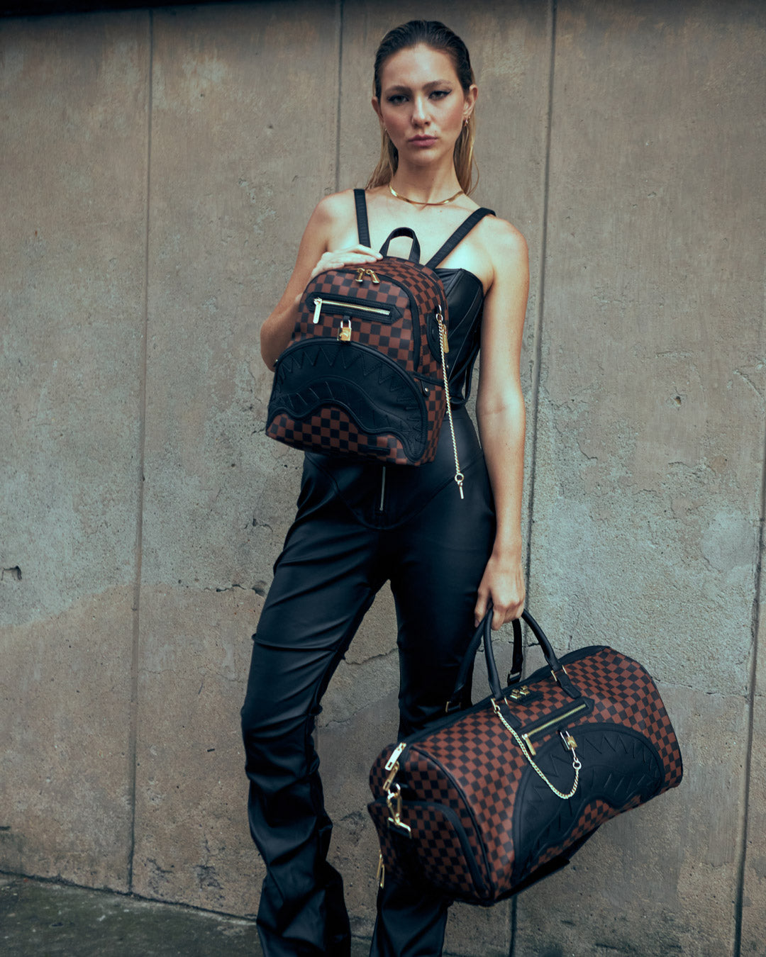 Dimensions: 10″ x 5″ x 11.5″ • Two large main zippered compartments • Side pockets • Zippered Stash pocket • Adjustable straps for custom sizing • Gold zippers with metal hardware