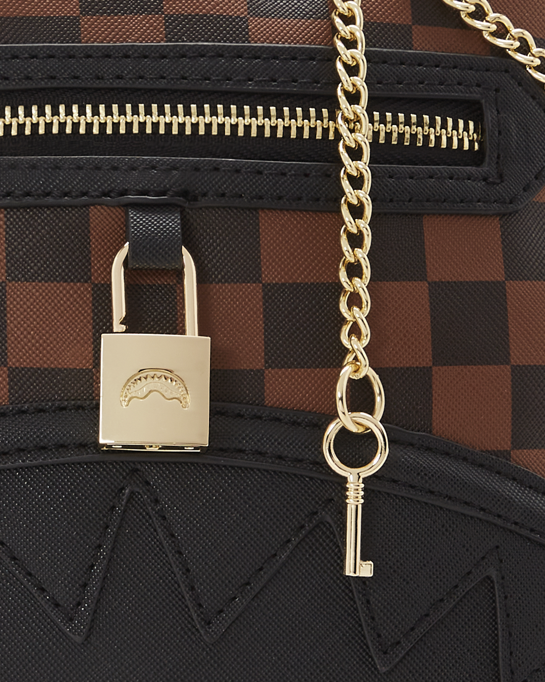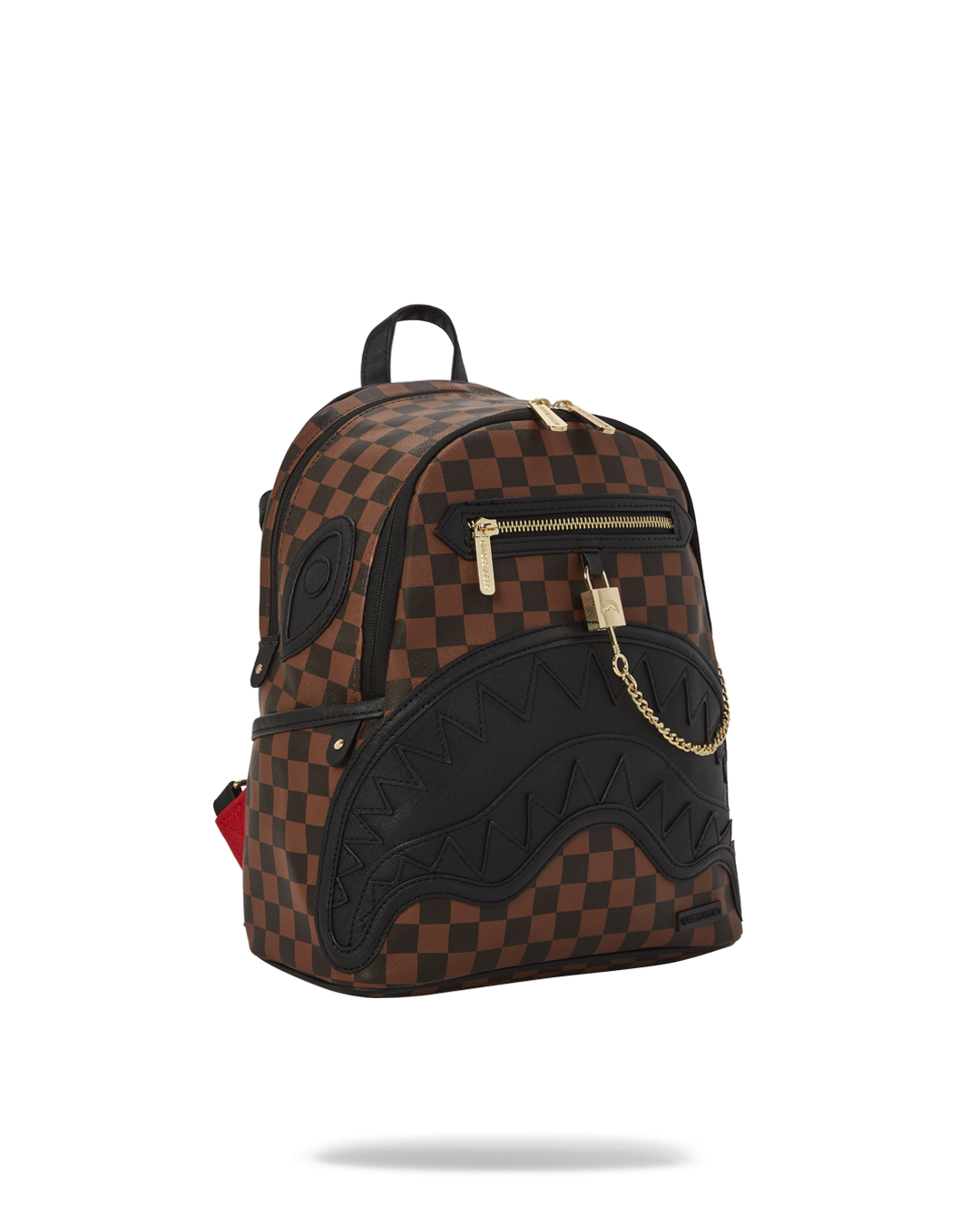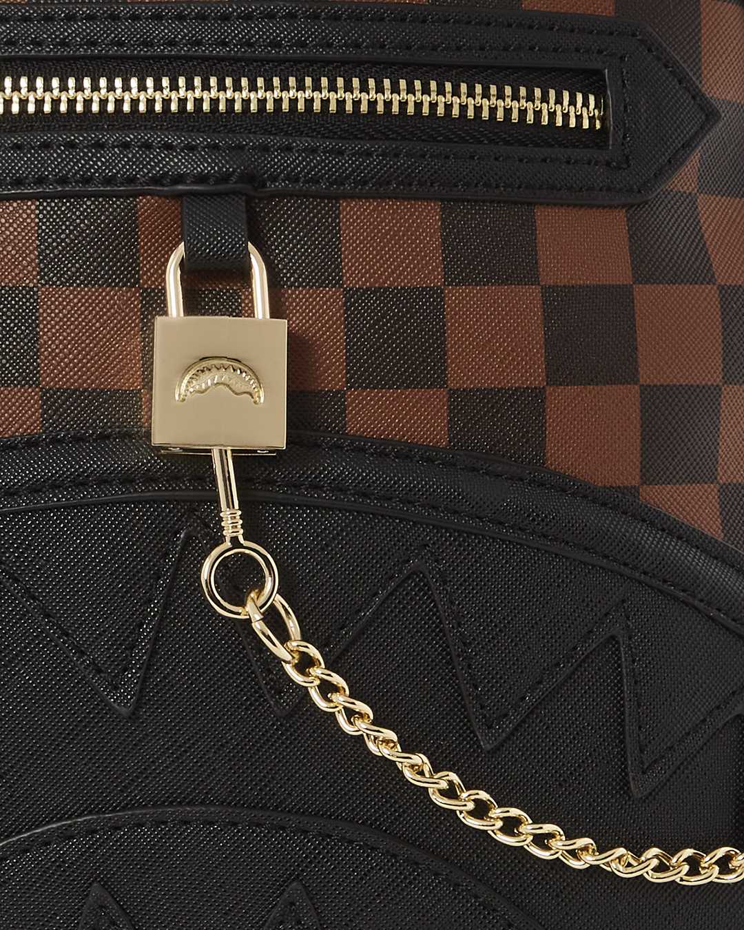 Removeable gold lock with embossed shark mouth with locking key attached to chain