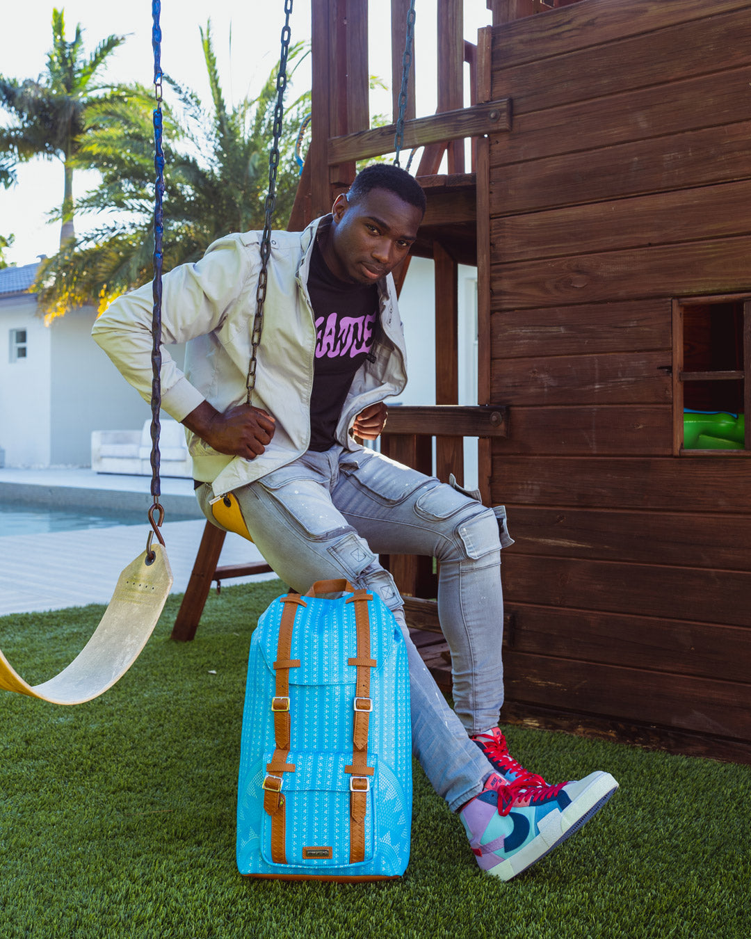 Dimensions: 20.5″ x 5″ x 11.5″ ? Top Flap opening w/ adjustable magnetic snap buckle closure ? Draw-string closure ? Front pocket with adjustable magnetic snap buckle closure ? Ergonomic mesh back padding ? Adjustable straps for custom sizing ? Nylon zippers with metal hardware ? Embossed sharkteeth straps ? Slide through back sleeve connects to carry-on luggage to free your hands