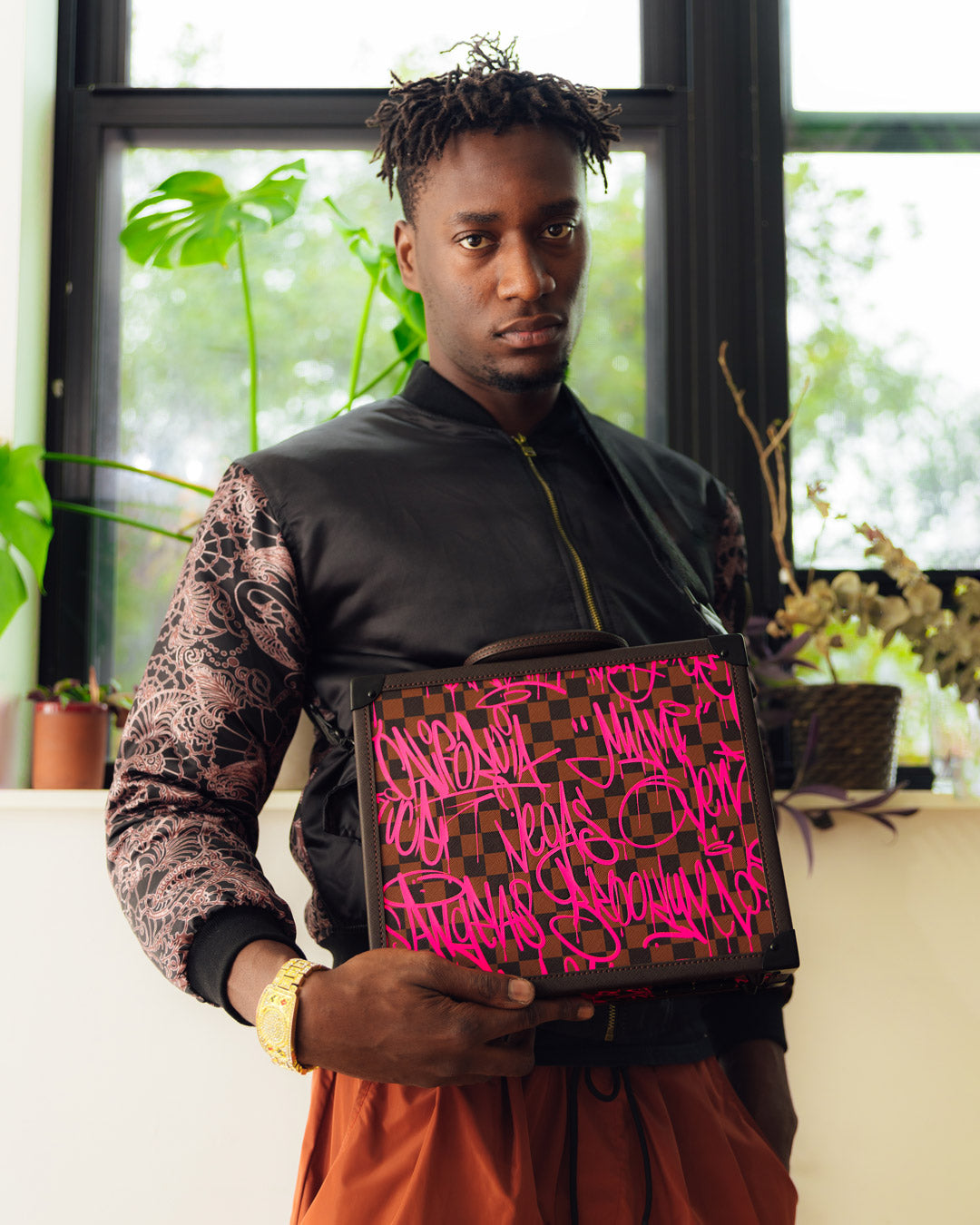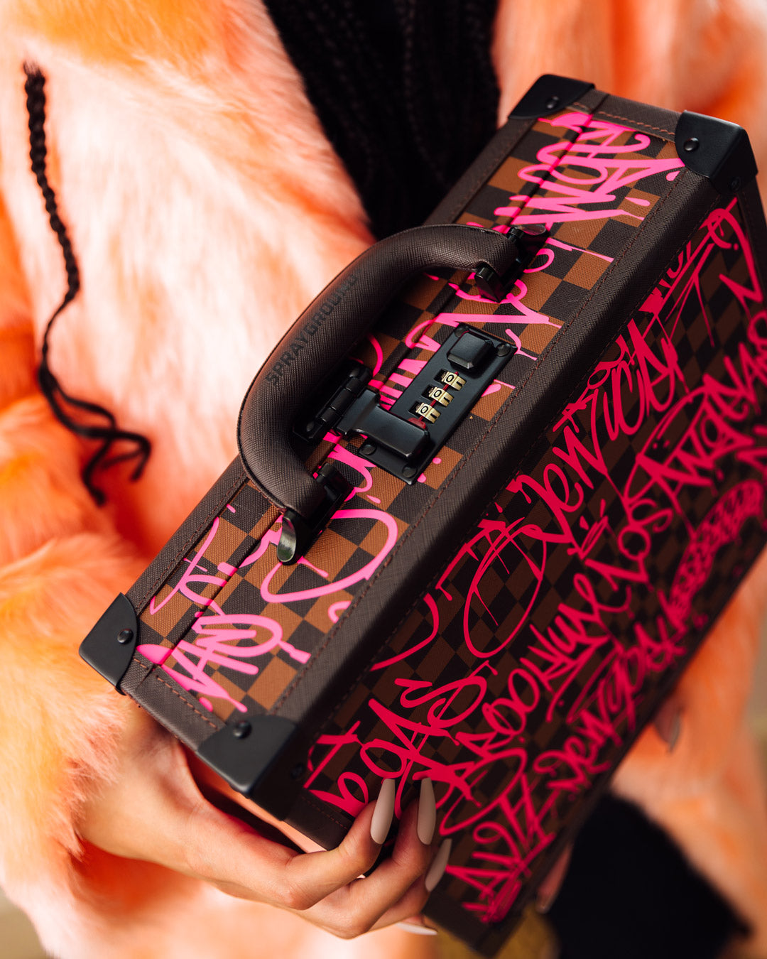 Customized Red Satin lining with Embossed Shark logo and Vegan leather trims