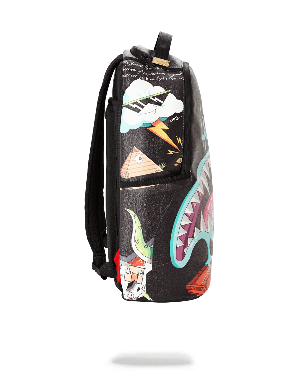 Dimensions: 18″ x 6″ x 11.5″ ? Front zipper pocket ? Side pockets ? Zippered Stash pocket ? Ergonomic mesh back padding ? Adjustable Straps for custom sizing ? Nylon Zippers with Metal Hardware ? Metal “Sprayground Authentic” badge ? Slide through back sleeve connects to Carry on luggage to free your hands