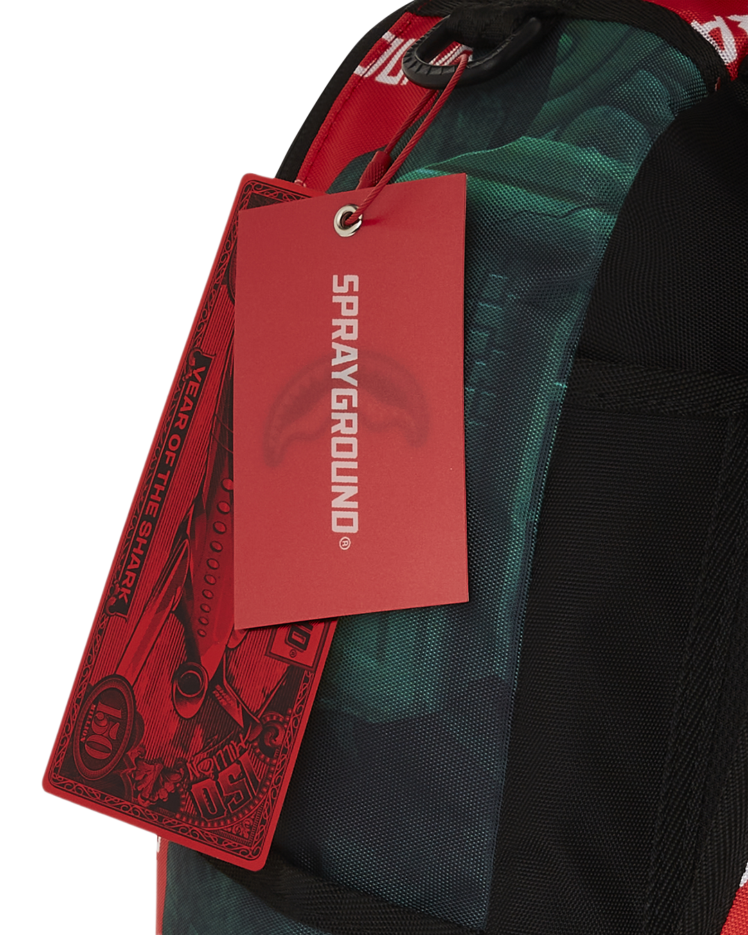 Dimensions: 18″ x 6″ x 11.5″ ? Front zipper pocket ? Side pockets ? Zippered Stash pocket ? Separate velour sunglass compartment ? Ergonomic mesh back padding ? Adjustable Straps for custom sizing ? Gold zippers with metal hardware ? Metal “Sprayground Authentic” badge ? Slide through back sleeve connects to carry-on luggage to free your hands