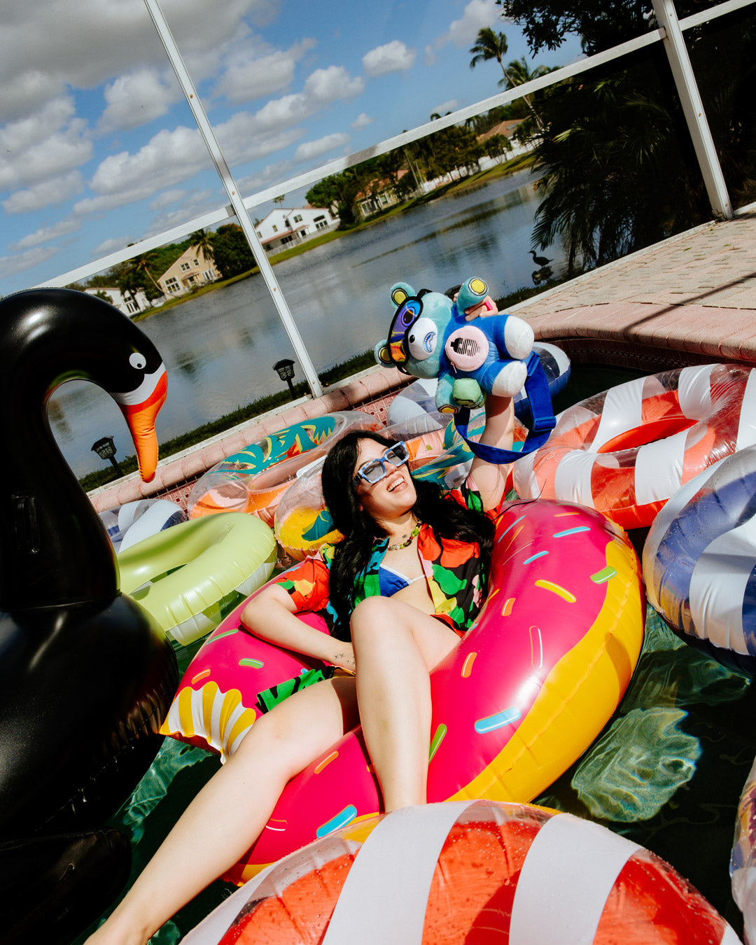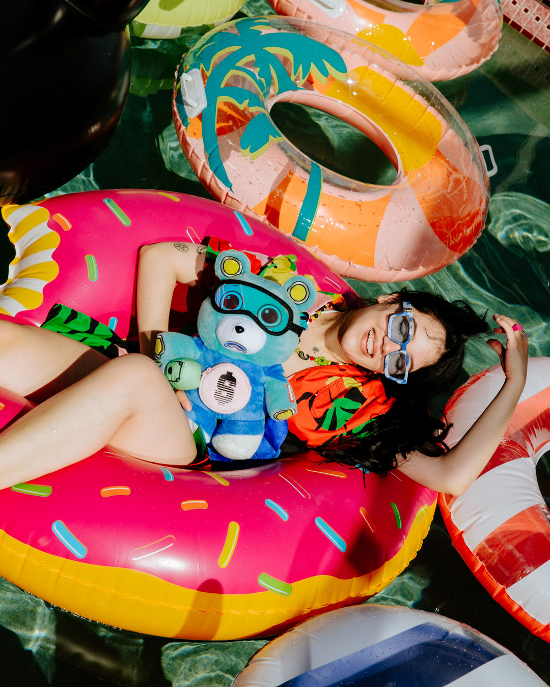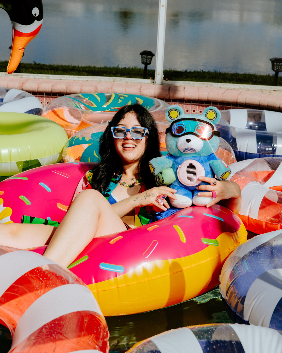 Dimensions: 16″H X 10″ W X 5″ D • Belly pocket and back pocket, 1 adjustable strap, iridescent goggle details, embroidered details on ears and paws
