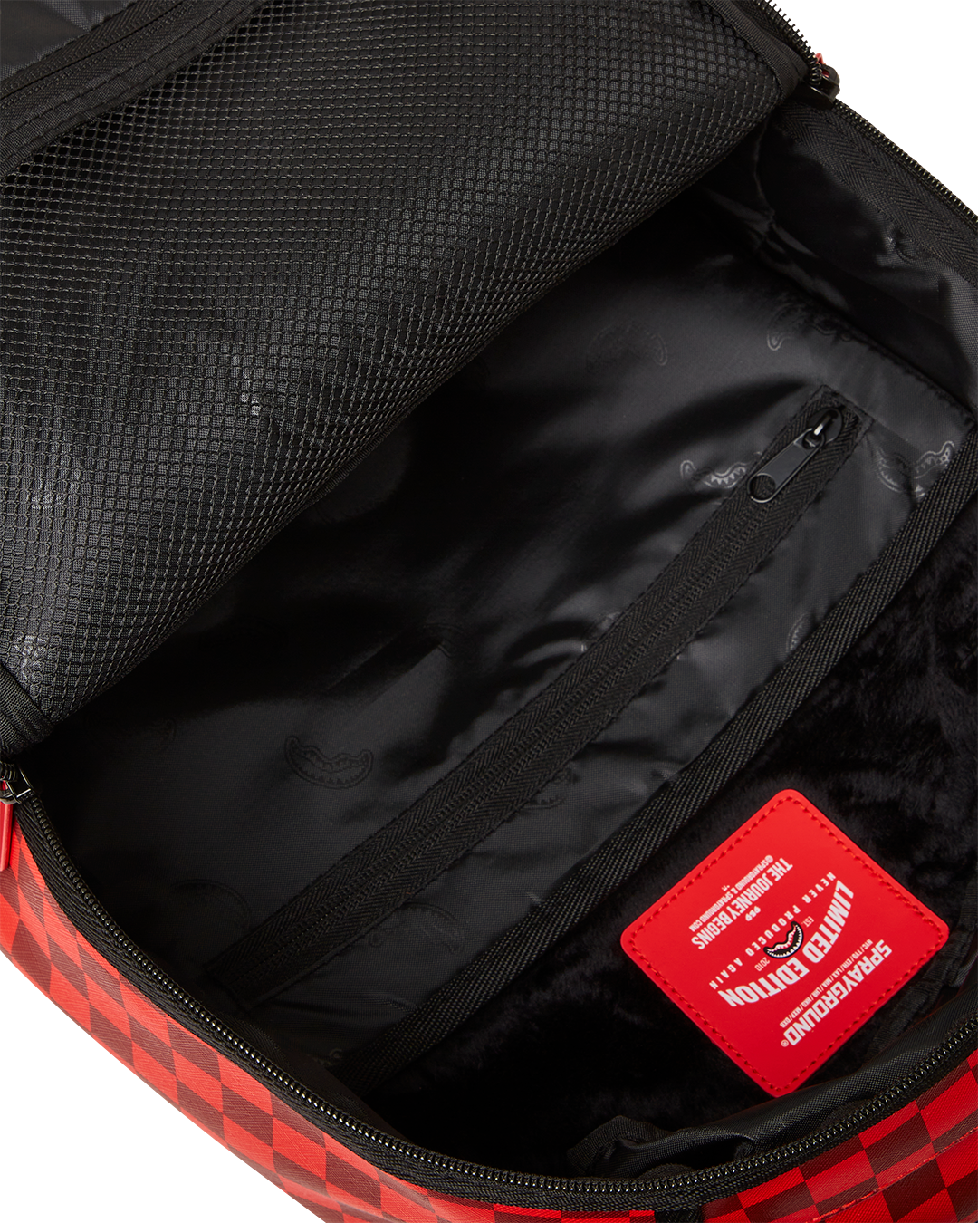 Dimensions: 18″ x 6″ x 11.5″ • Front zipper pocket • Side pockets • Zippered Stash pocket • Separate velour sunglass compartment • Ergonomic mesh back padding • Adjustable Straps for custom sizing • Gold zippers with metal hardware • Metal “Sprayground Authentic” badge • Slide through back sleeve connects to carry-on luggage to free your hands