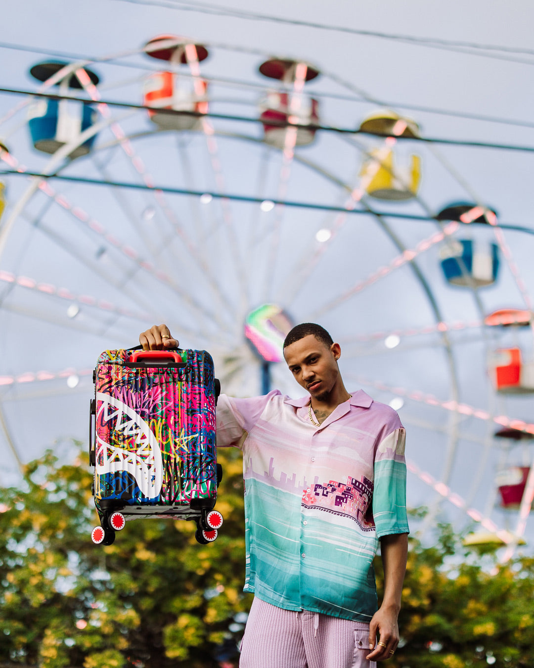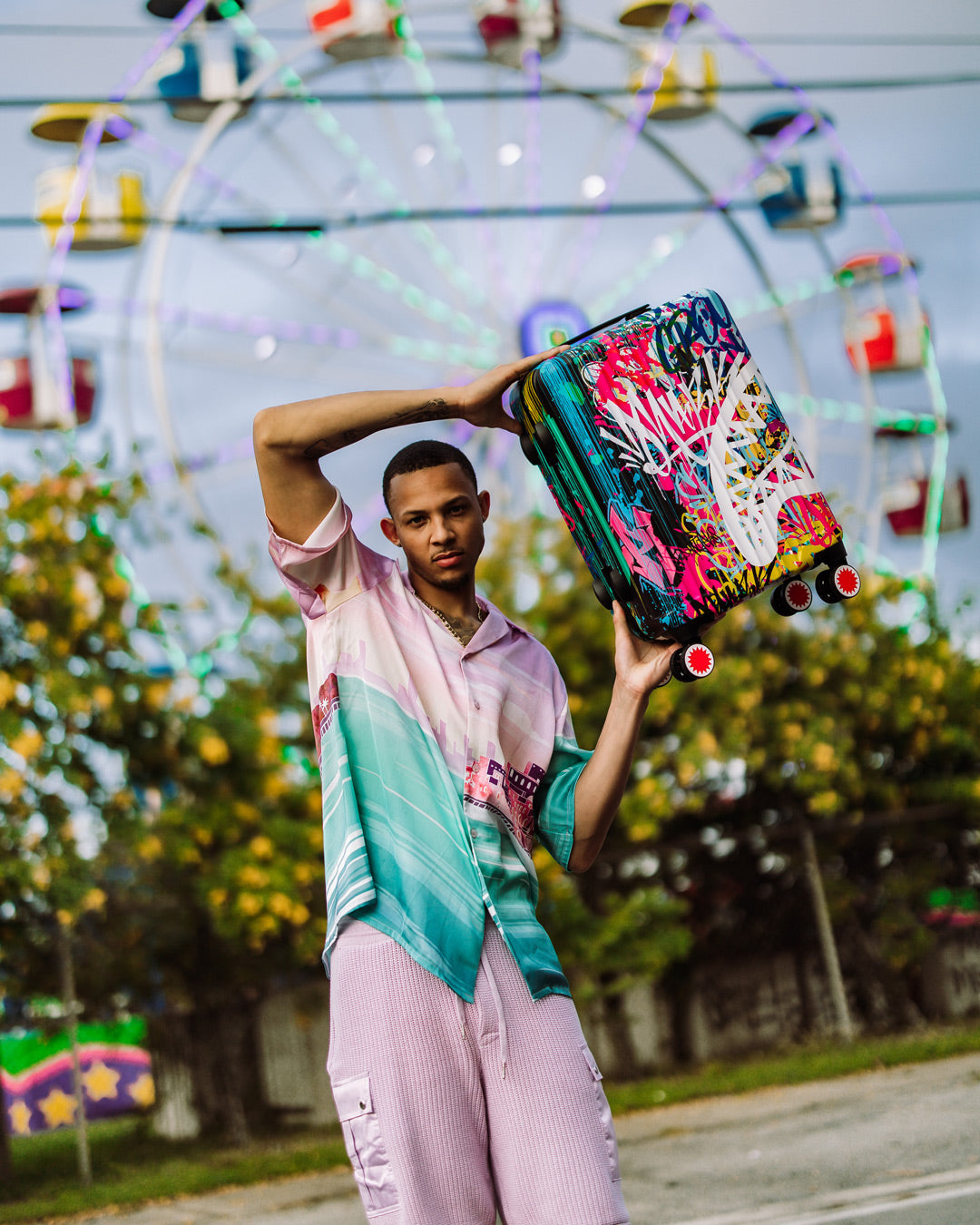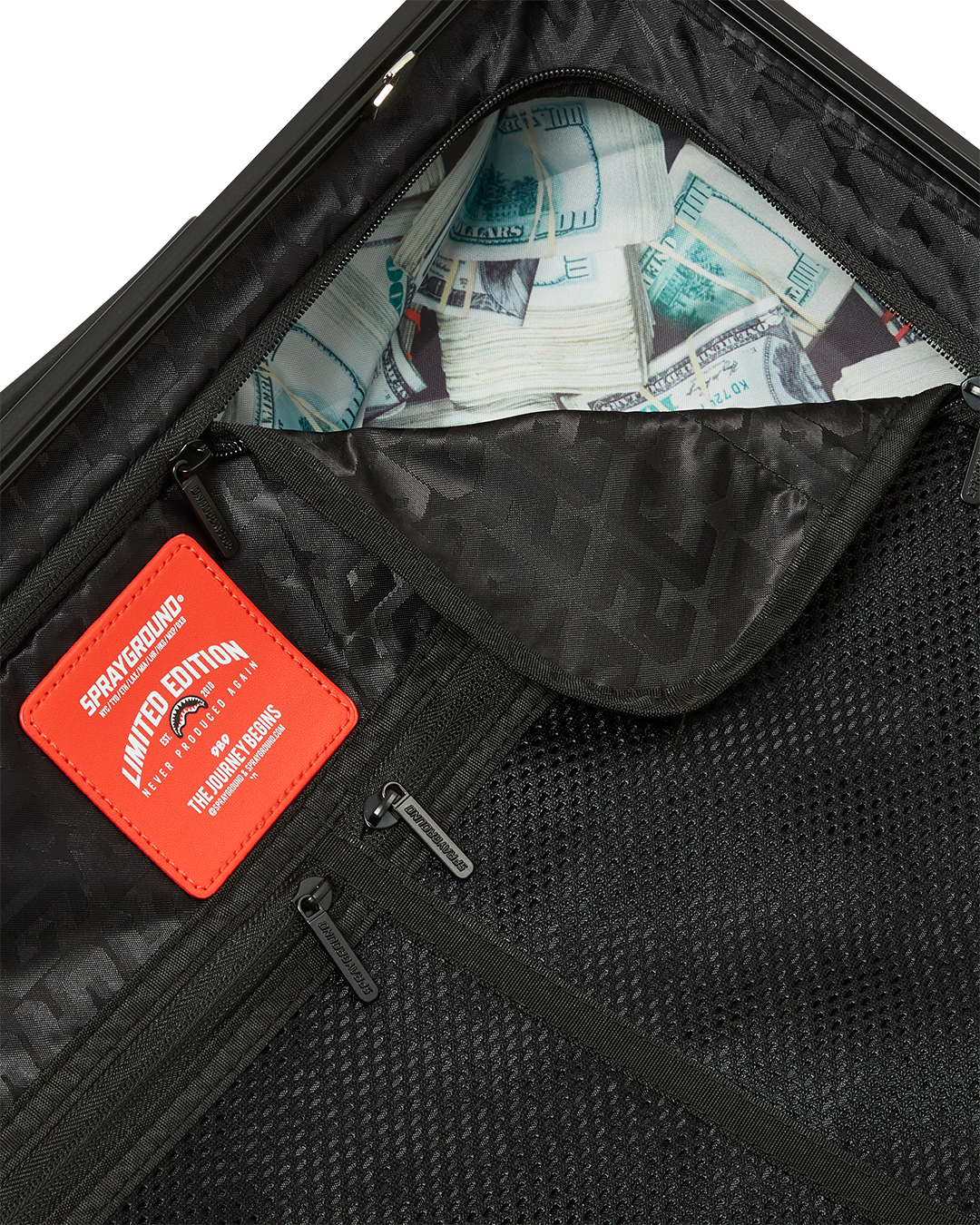 Sprayground products are rigorously tested to ensure that the travel products you trust meet stringent standards. Consequently, if a problem occurs with this Sprayground luggage and the problem is caused by manufacturing defects in material and workmanship, Sprayground will, in its discretion, either fix or replace the luggage in accordance with the warranty terms and conditions stated herein. The warranty provided for herein applies only to the first purchaser or gift recipient of the luggage for a period of one year starting from the date this luggage was purchased. This warranty covers only manufacturing defects and does not cover any damage caused by misuse such as transportation of unusual items, neglect, accidents, abrasion, exposure to extreme temperatures, solvents, acids, water, normal wear and tear or transport damage. The warranty provided herein is limited to the value of the Product. Manufacturing specifications are subject to change without notice. Product is made in limited edition production and if product needs to be replaced and it is not available anymore, then either a store credit will be given if the product can not be replaced.