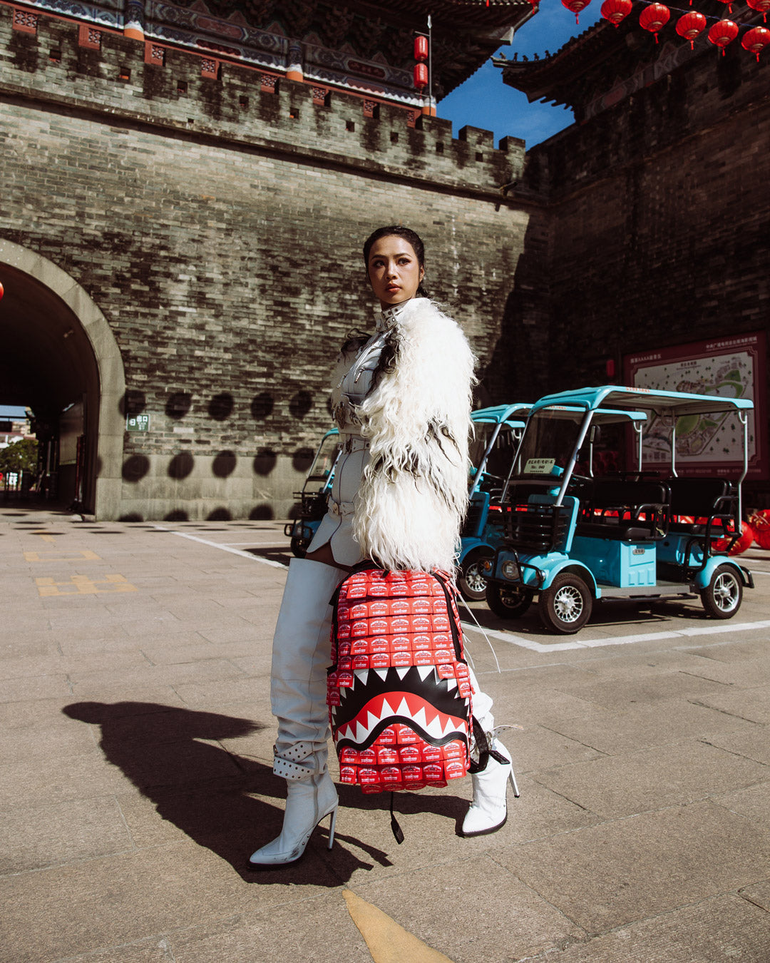 Dimensions: 18″ x 6″ x 11.5″ • Front zipper pocket • Side pockets • Zippered Stash pocket • Separate velour sunglass compartment • Ergonomic mesh back padding • Adjustable Straps for custom sizing • Gold zippers with metal hardware • Metal “Sprayground Authentic” badge • Slide through back sleeve connects to carry-on luggage to free your hands