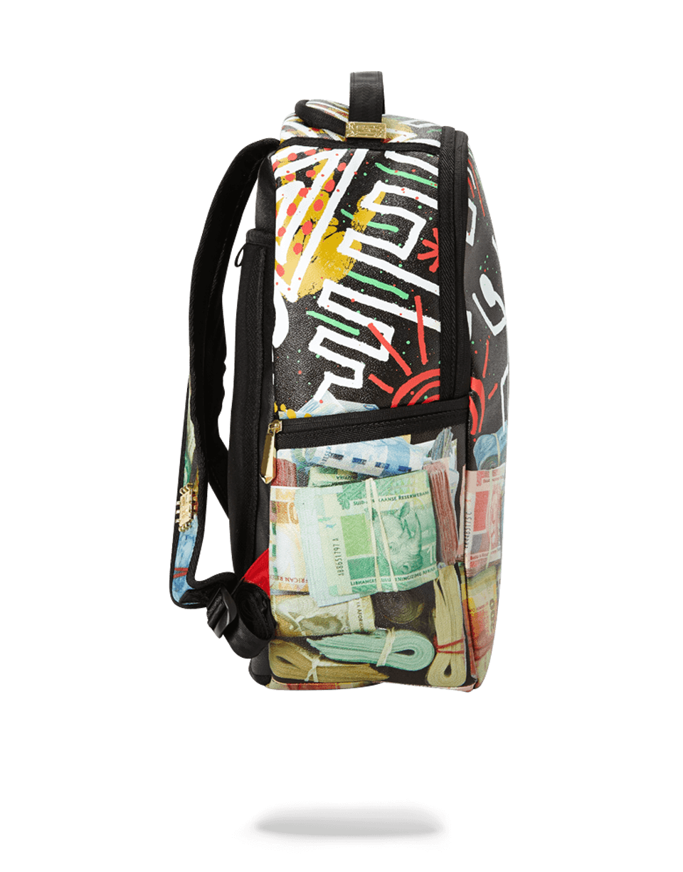 Dimensions: 18″ x 6″ x 11.5″ ? Front zipper pocket ? Side pockets ? Zippered Stash pocket ? Ergonomic mesh back padding ? Adjustable Straps for custom sizing ? Nylon Zippers with Metal Hardware ? Metal “Sprayground Authentic” badge ? Slide through back sleeve connects to Carry on luggage to free your hands