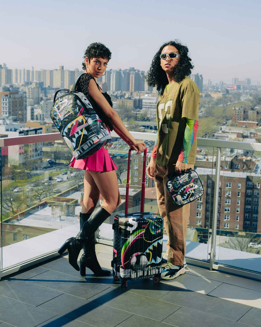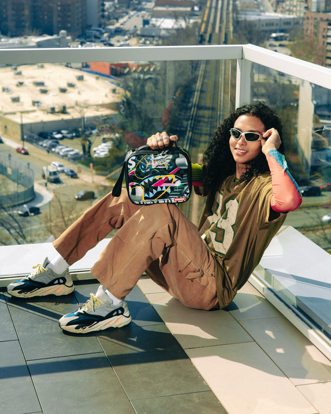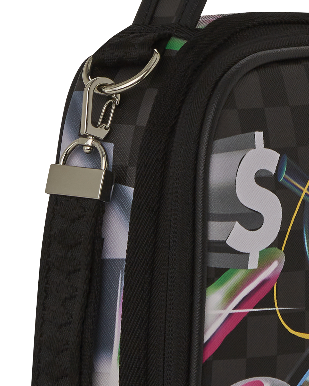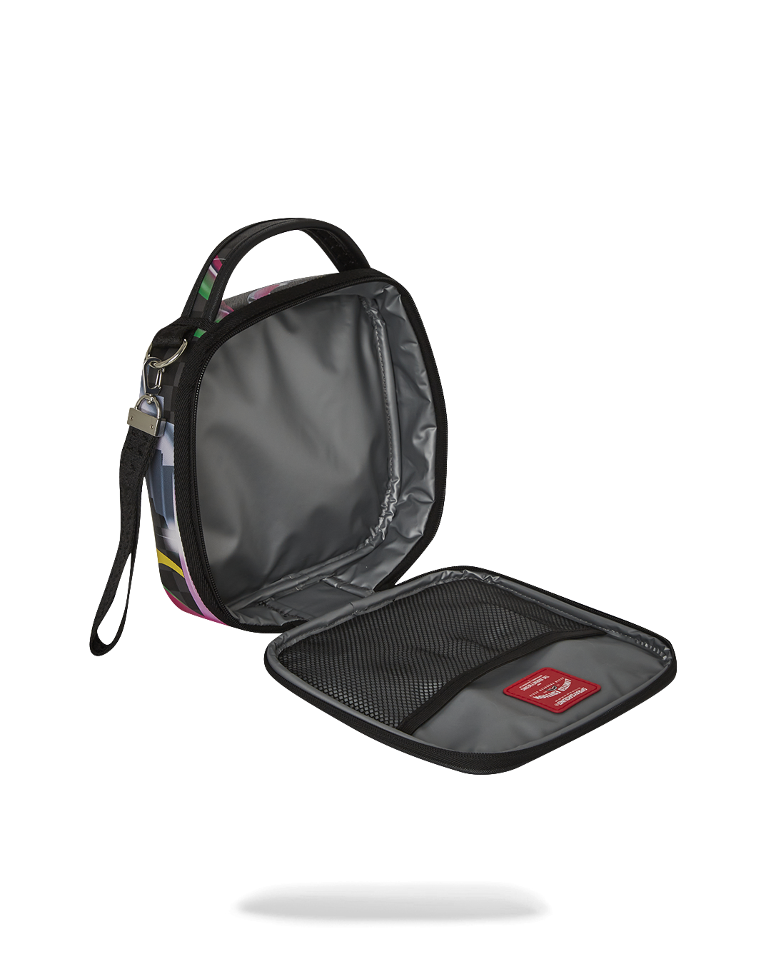Dimensions: 8.5″ x 3″ x 8.5″ • Double zipper opening • Top handle • Removable side handle • Red zippers with metal hardware • Zippered stash pocket