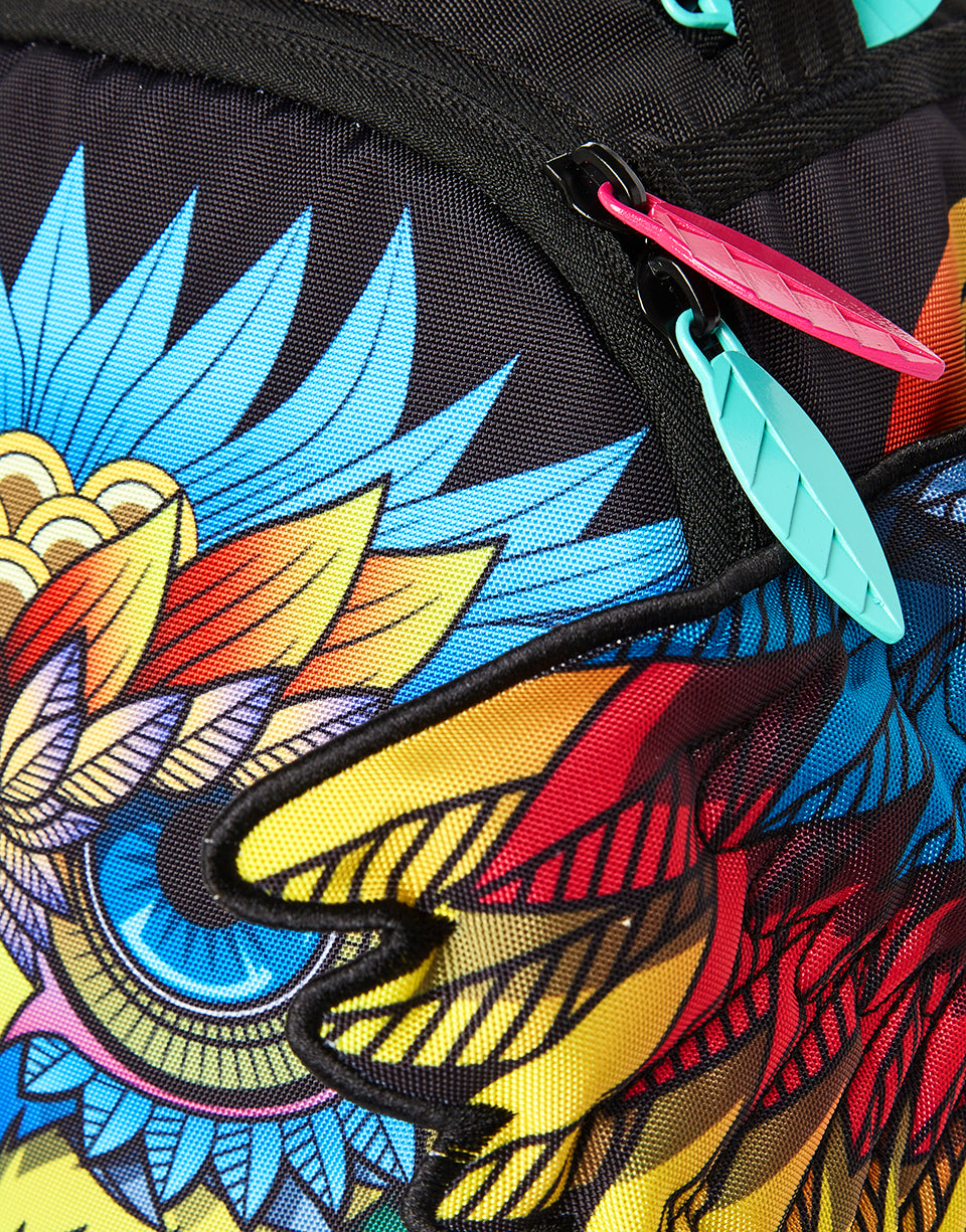 Dimensions: 15″ x 5″ x 10″ • Side pockets • Zippered Stash pocket • Separate velour sunglass compartment • Ergonomic mesh back padding • Adjustable Straps for custom sizing • Pink and blue feather zippers with metal hardware