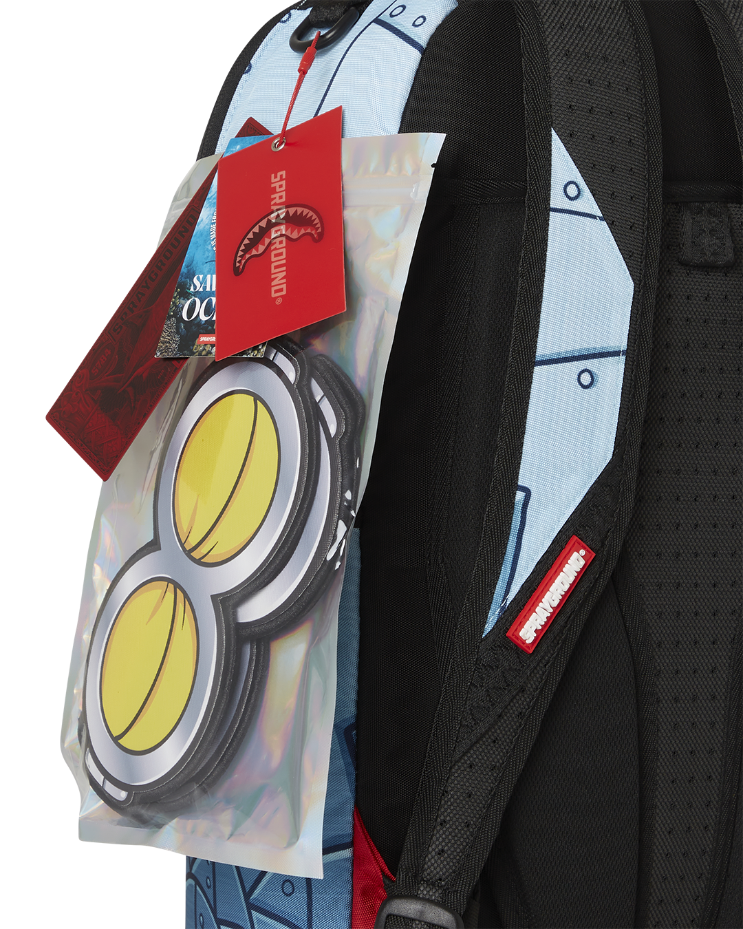 Dimensions: 18″ x 6″ x 11.5″ • Front zipper pocket • Side pockets • Zippered Stash pocket • Separate velour sunglass compartment • Ergonomic mesh back padding • Adjustable Straps for custom sizing • Gold zippers with metal hardware • Metal “Sprayground Authentic” badge • Slide through back sleeve connects to carry-on luggage to free your hands
