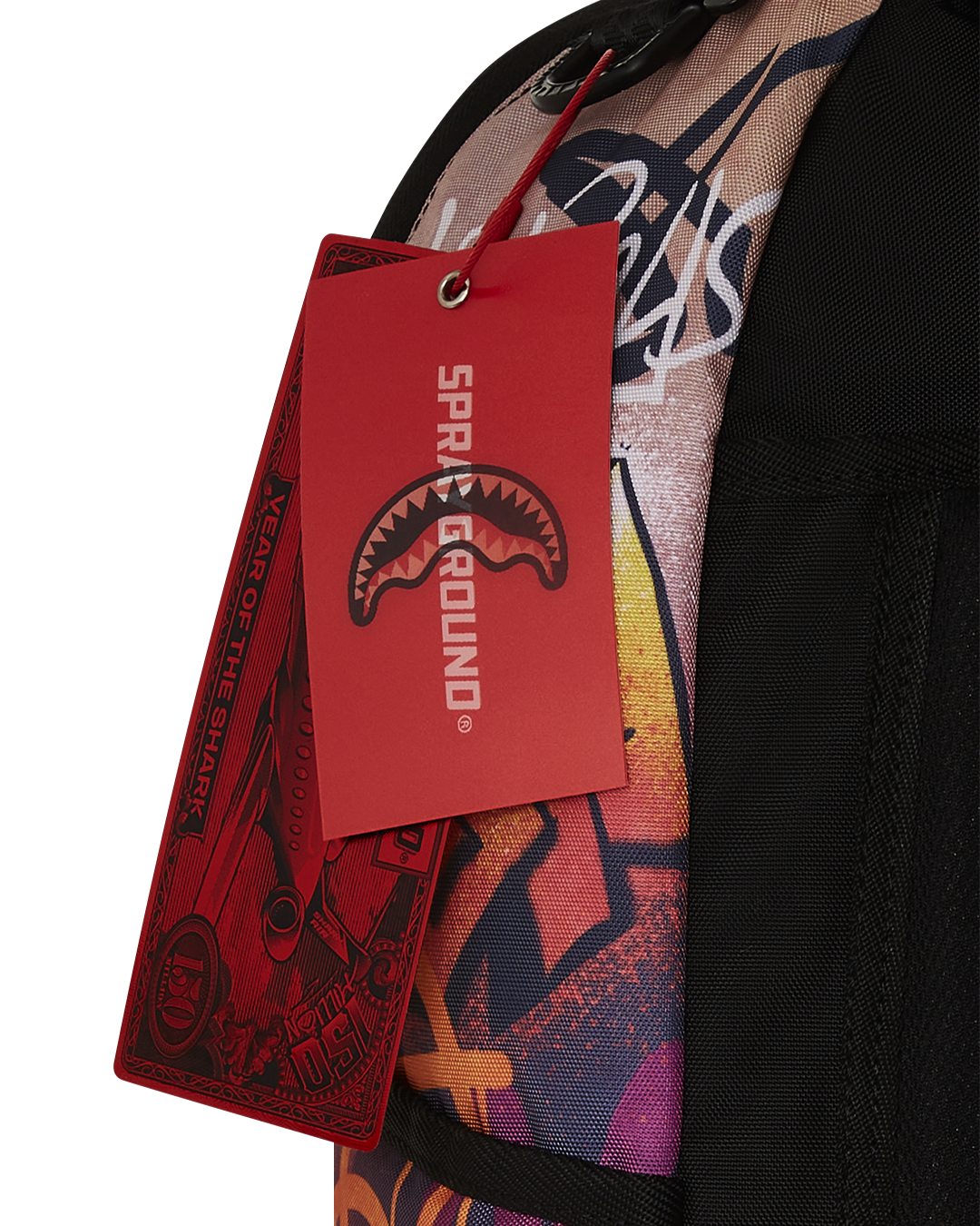 Dimensions: 18″ x 6″ x 11.5″ • Front zipper pocket • Side pockets • Zippered Stash pocket • Separate velour sunglass compartment • Ergonomic mesh back padding • Adjustable Straps for custom sizing • Gold zippers with metal hardware • Metal “Sprayground Authentic” badge • Slide through back sleeve connects to carry-on luggage to free your hands