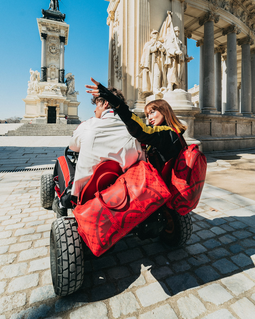 Dimensions: 20″ x 10″ x 10.75″ • Metal zipper pocket• Back Zippers •Zippered sneaker pocket • gold zippers • Adjustable Straps for custom sizing •Metal Zippers with Metal Hardware • bag of Sprayground money
