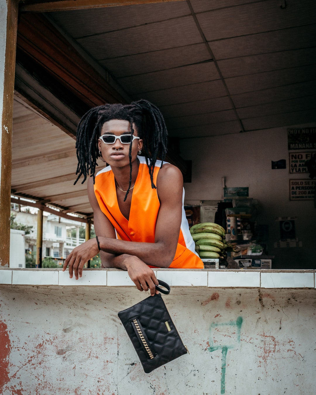 Pouch with removable wristlet strap, Handle on front panel, Zip Closure