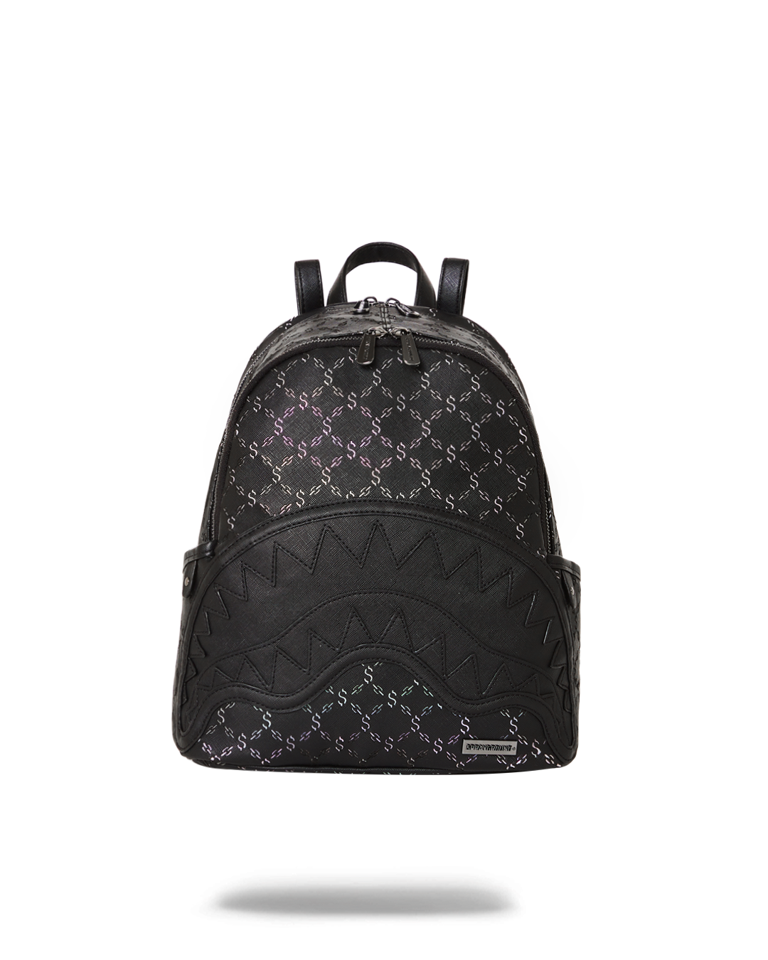 100% PVC with exclusive laser cut money logo pattern applied over metallic iridescent fabric to give a touch of shimmer to the fabric