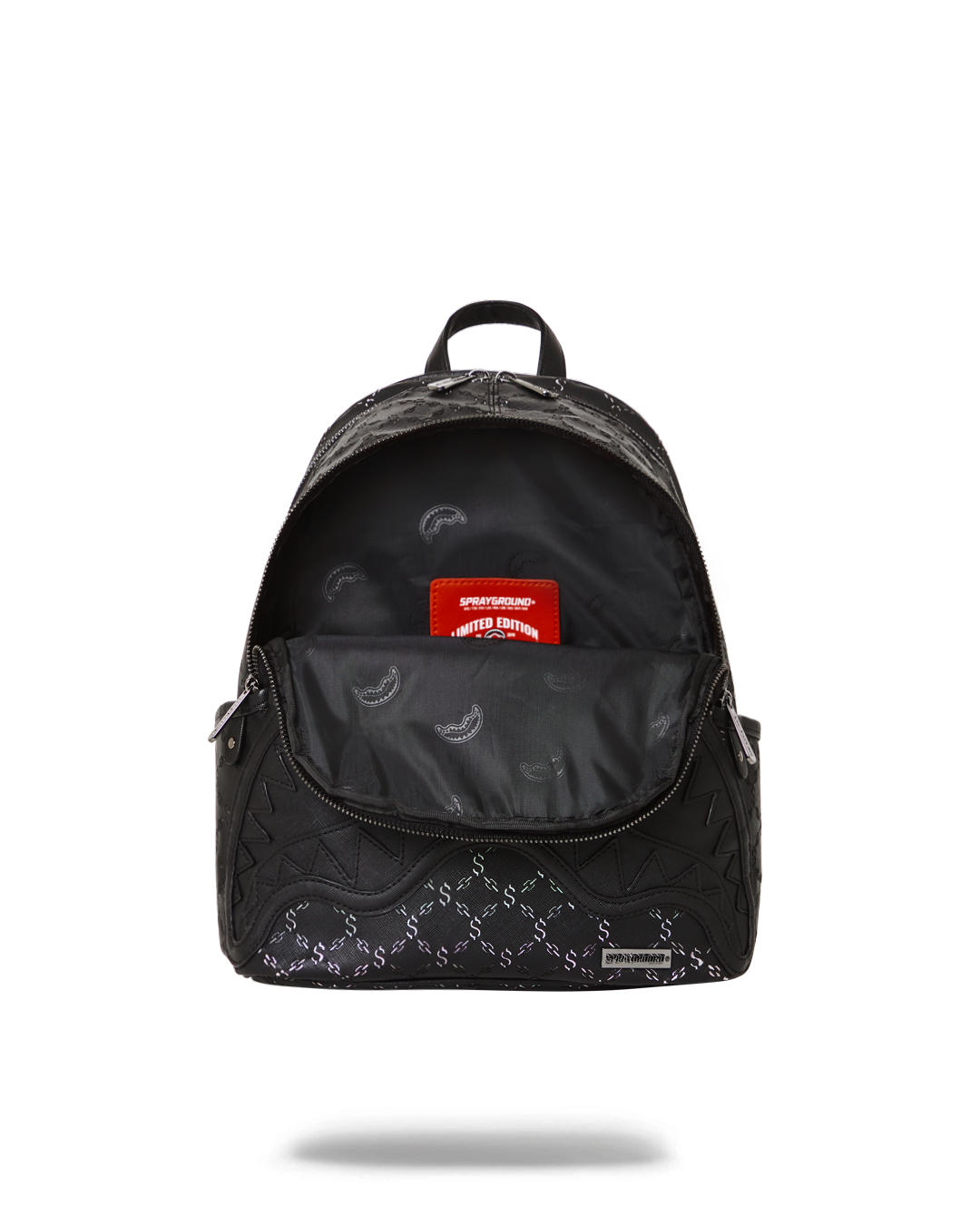 Dimensions: 10″ x 5″ x 11.5″ • Two large main zippered compartments • Side pockets • Zippered Stash pocket • Adjustable straps for custom sizing • Gold zippers with metal hardware