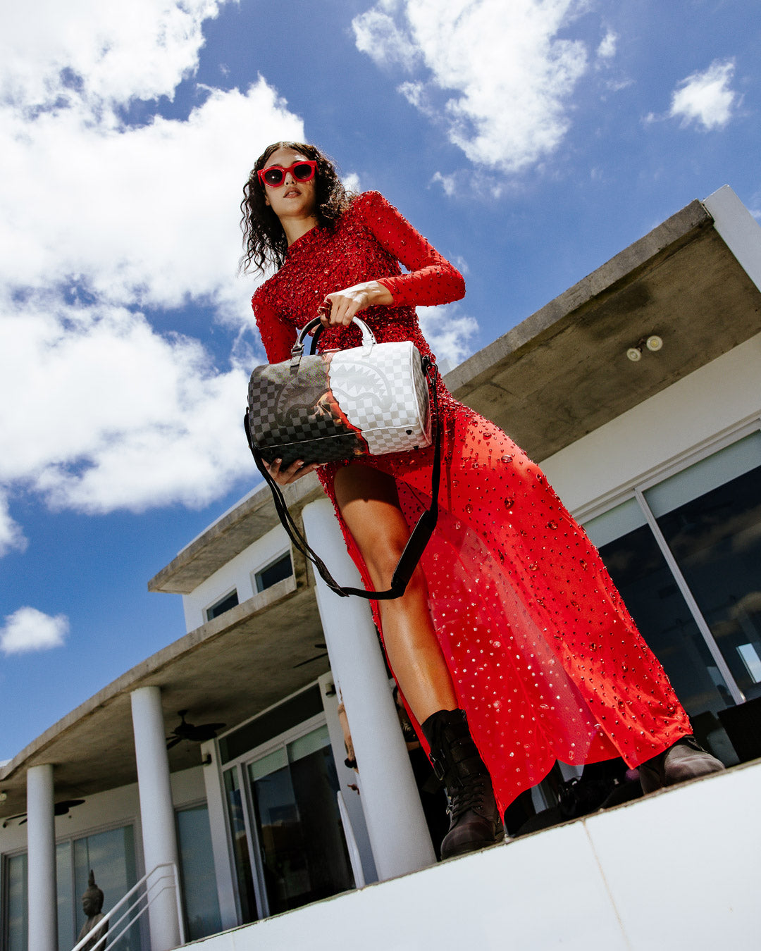 Dimensions: 8″ x 7.5″ x 13″• Metal zipper pocket• Back Zippers •Zippered sneaker pocket • gold zippers • Adjustable Straps for custom sizing •Metal Zippers with Metal Hardware • bag of Sprayground money