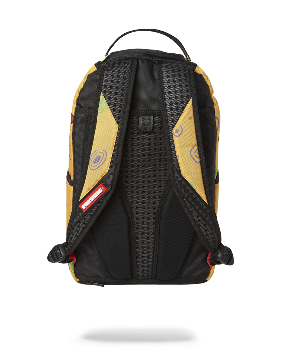 Dimensions: 18″ x 6″ x 11.5″ • Front zipper pocket • Side pockets • Zippered Stash pocket • Separate velour sunglass compartment • Ergonomic mesh back padding • Adjustable Straps for custom sizing • Red zippers with metal hardware • Metal “Sprayground Authentic” badge • Slide through back sleeve connects to carry-on luggage to free your hands