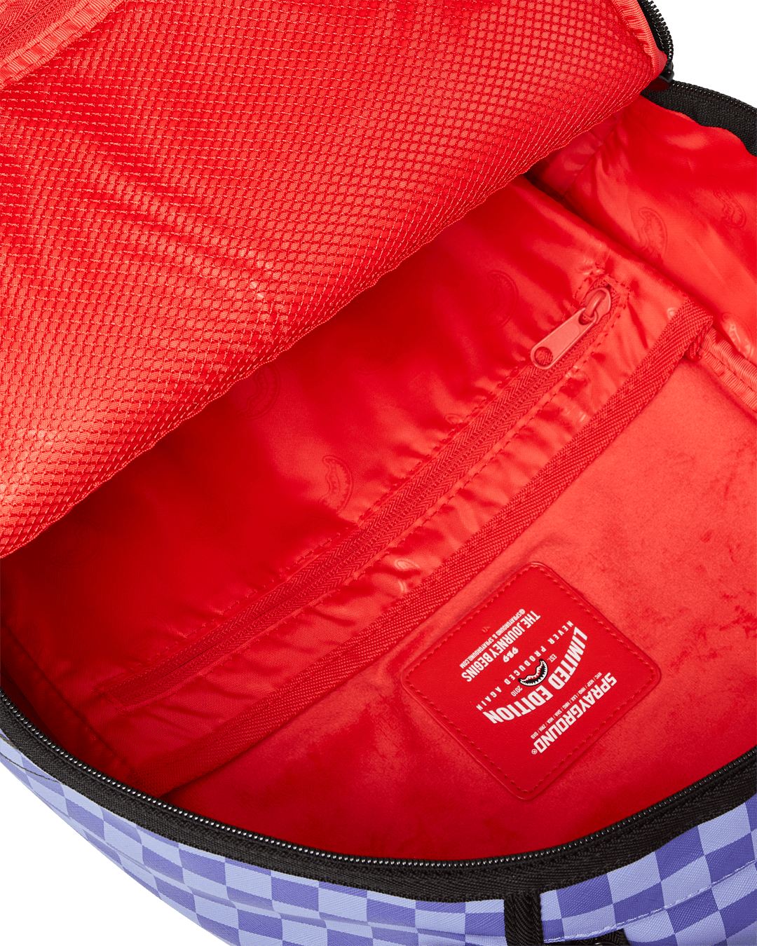Dimensions: 18″ x 6″ x 11.5″ • Front zipper pocket • Side pockets • Zippered Stash pocket • Separate velour sunglass compartment • Ergonomic mesh back padding • Adjustable Straps for custom sizing • Gold zippers with metal hardware • Metal “Sprayground Authentic” badge • Slide through back sleeve connects to carry-on luggage to free your hands
