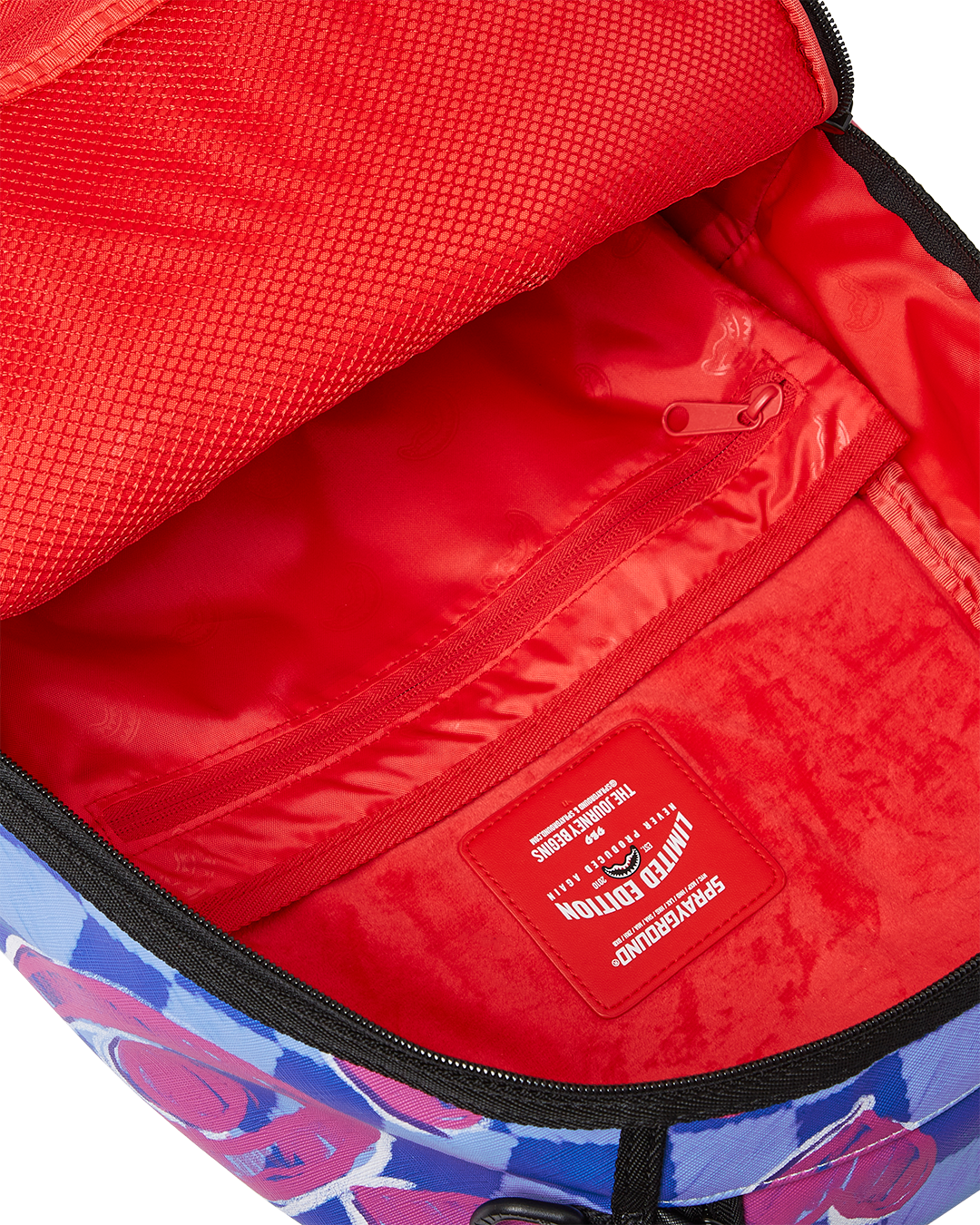 Dimensions: 18″ x 6″ x 11.5″ • Front zipper pocket • Side pockets • Zippered Stash pocket • Separate velour sunglass compartment • Ergonomic mesh back padding • Adjustable Straps for custom sizing • Gold zippers with metal hardware • Metal “Sprayground Authentic” badge • Slide through back sleeve connects to carry-on luggage to free your hands