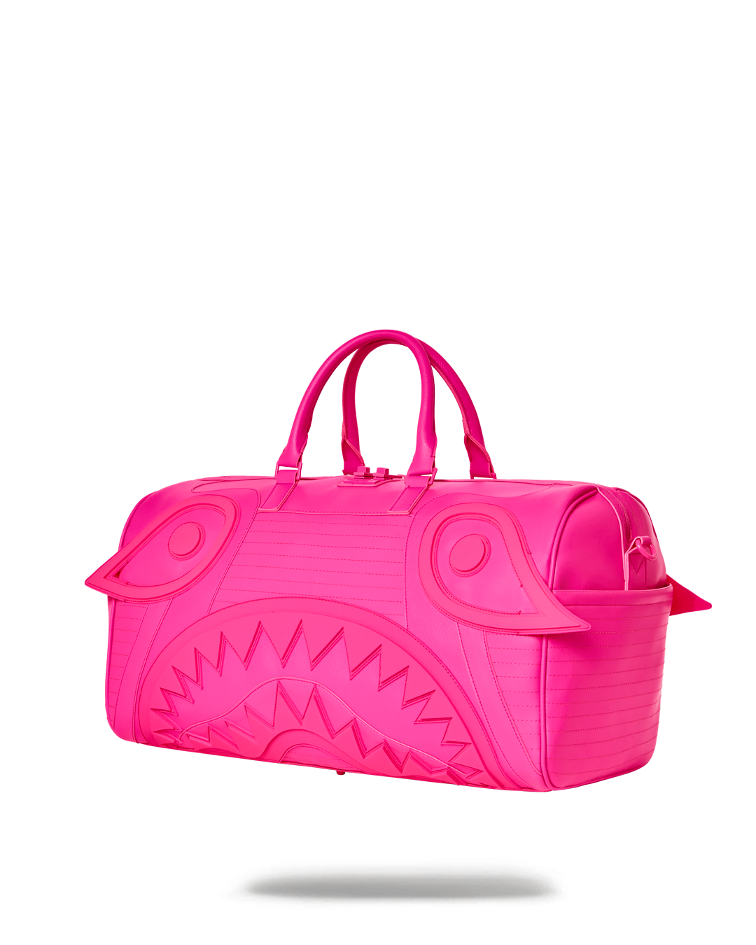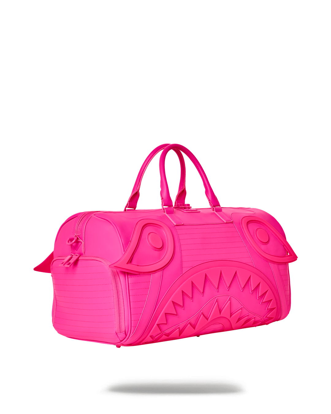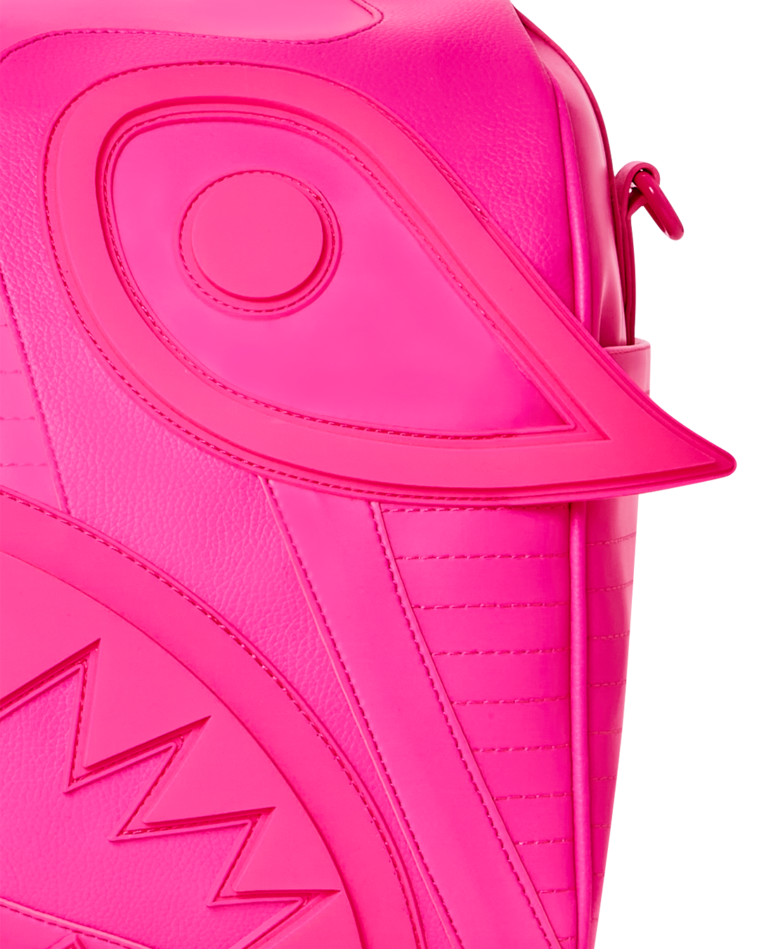 Exaggerated rubber shark eyes and rubber mouth details