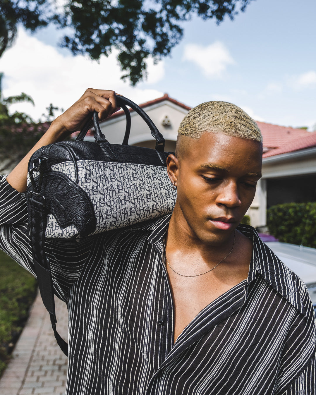 Dimensions: 8″ x 7.5″ x 13″ • Zippered top opening • Zippered pocket on back panel • Zippered side pocket • Removable adjustable strap for custom sizing with reinforced crossbody construction • Logo embossed shoulder pad for comfort • Gold zippers with metal hardware • Zippered stash pocket