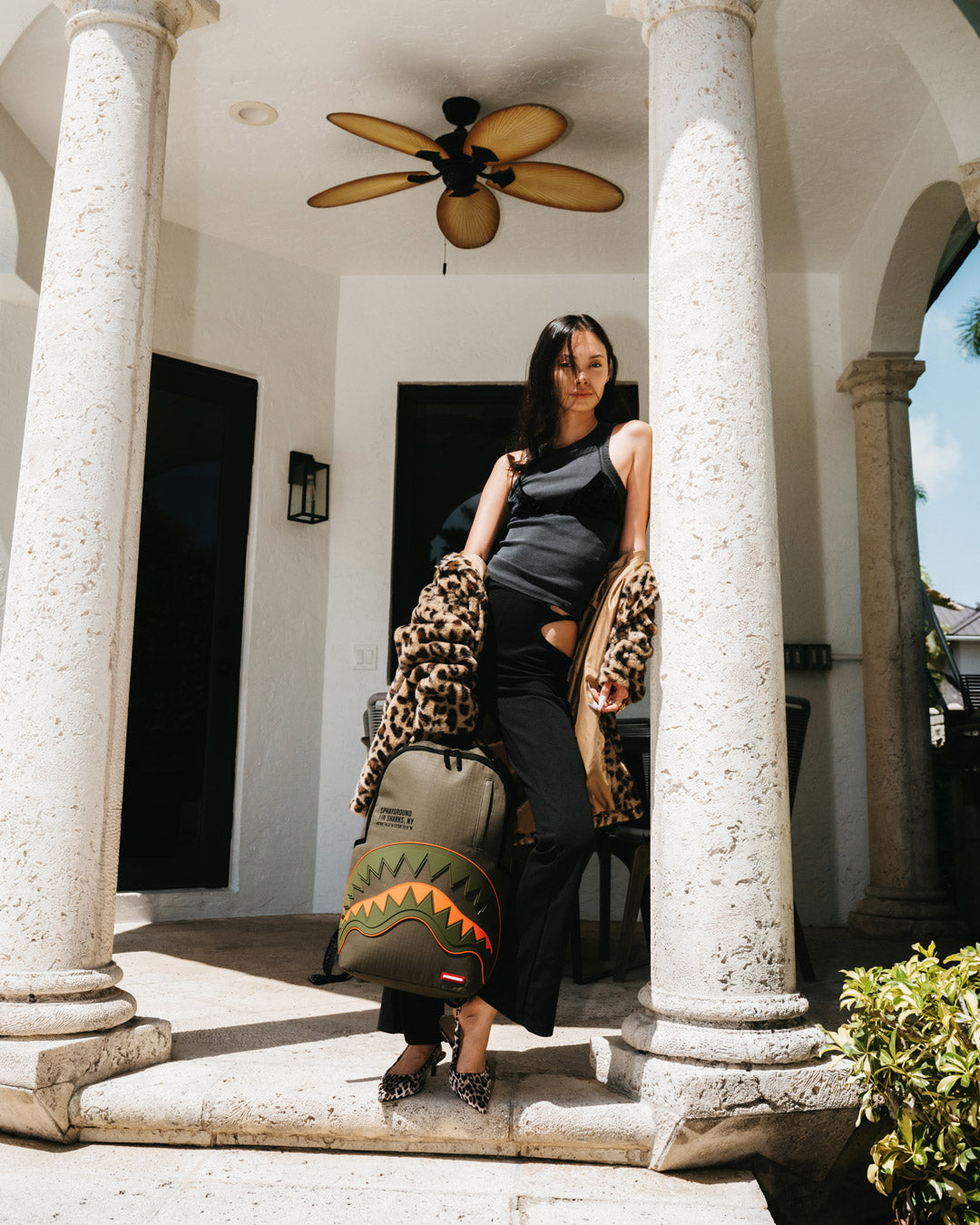 Dimensions: 18″ x 6″ x 11.5″ • Front zipper pocket • Side pockets • Zippered Stash pocket • Separate velour sunglass compartment • Ergonomic mesh back padding • Adjustable Straps for custom sizing • Gold zippers with metal hardware • Metal “Sprayground Authentic” badge • Slide through back sleeve connects to carry-on luggage to free your hands