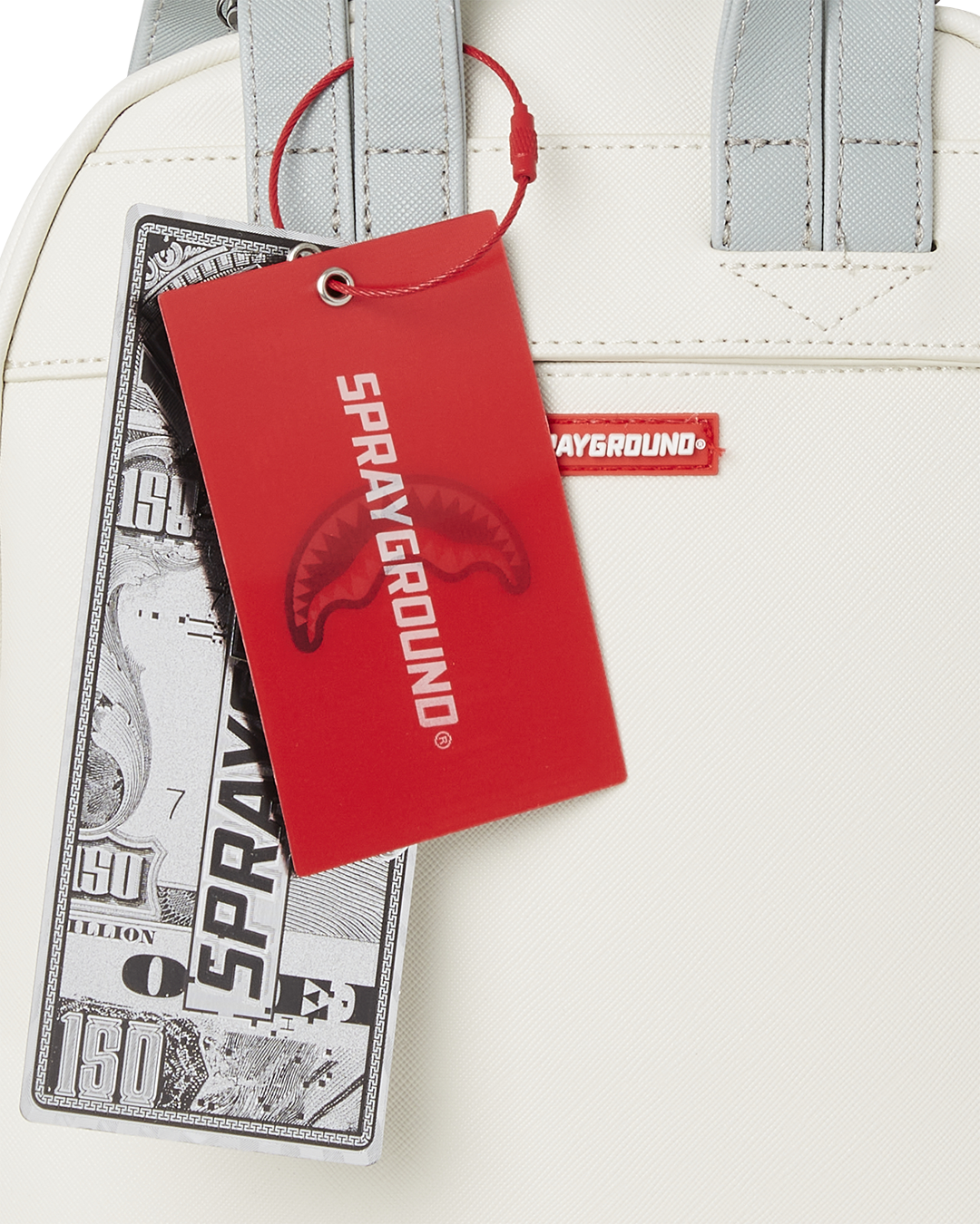 Dimensions: 10″ x 5″ x 11.5″ • Two large main zippered compartments • Side pockets • Zippered Stash pocket • Adjustable straps for custom sizing • Gold zippers with metal hardware