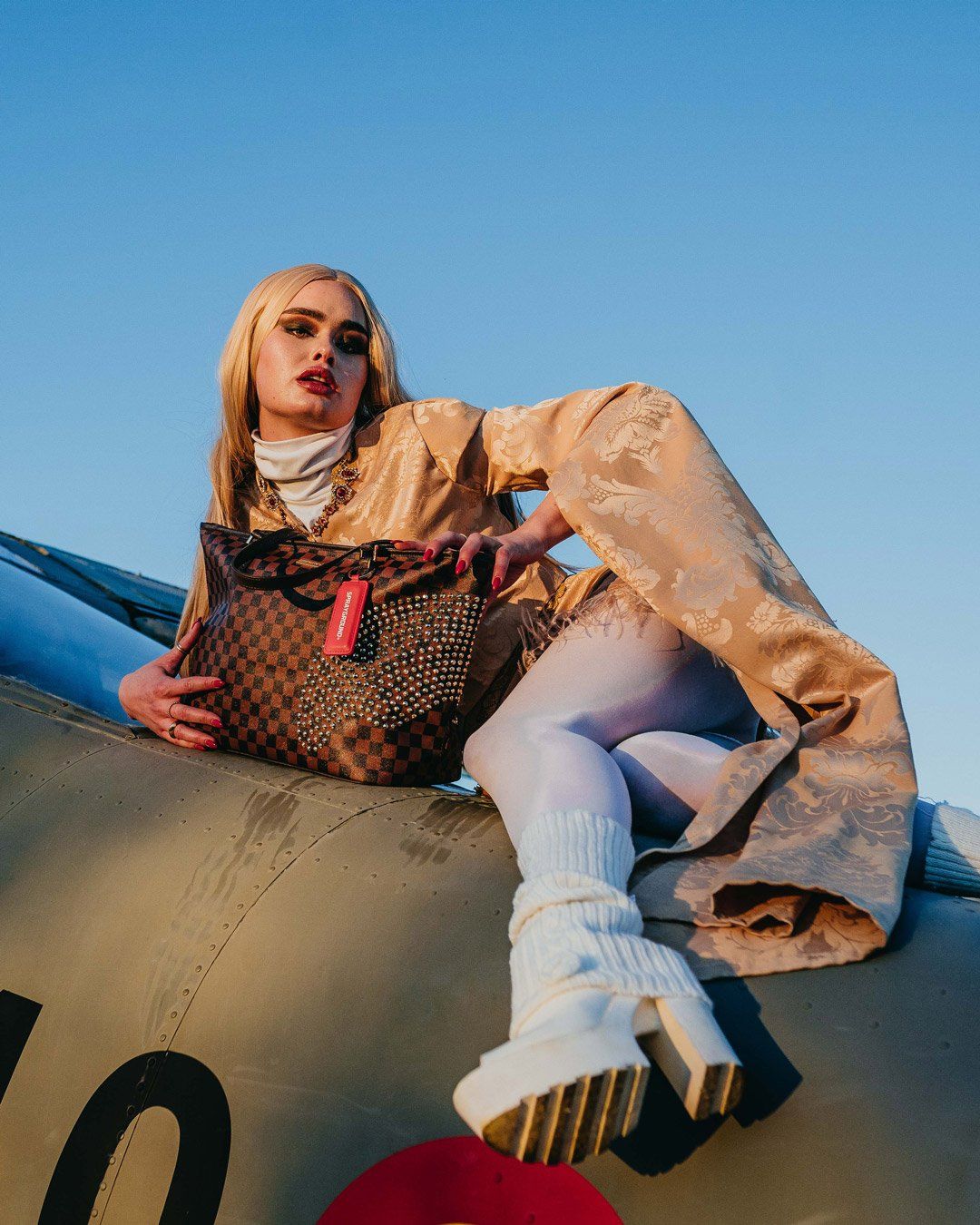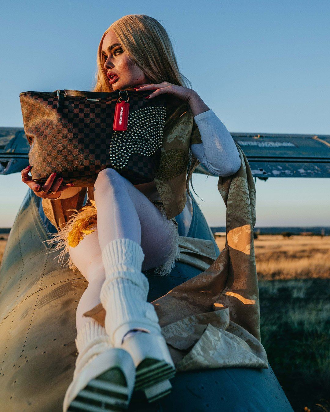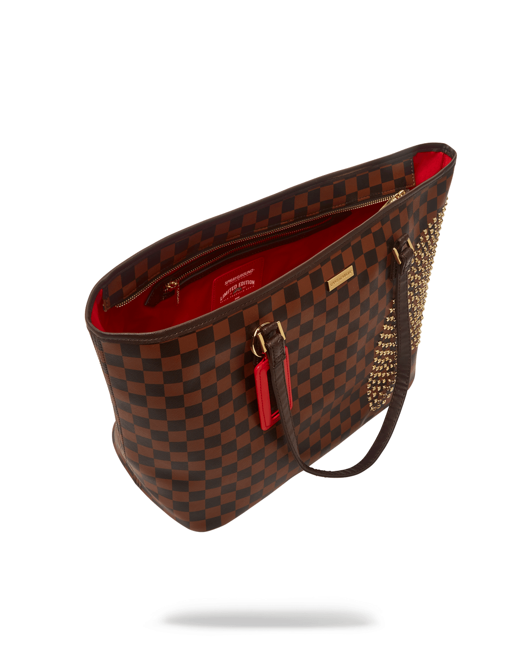 Dimensions: 19″ x 6.5″ x 11.5″ ? Top zipper opening ? Top double handle ? Sprayground keychain ? Gold zippers with metal hardware