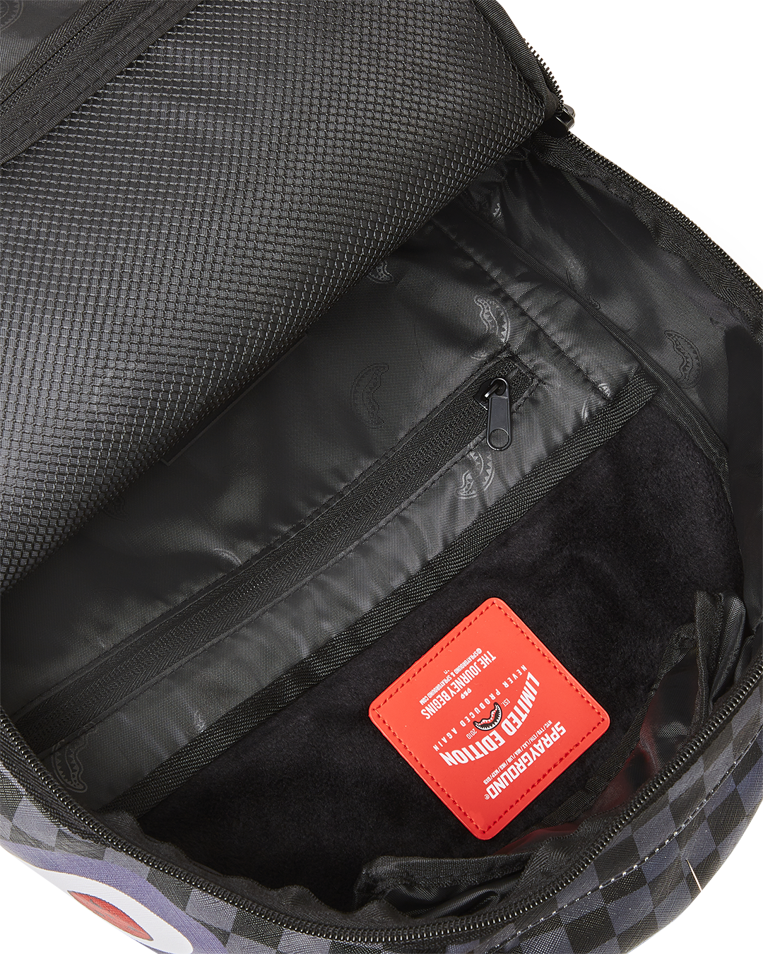 Dimensions: 18″ x 6″ x 11.5″ • Front zipper pocket • Side pockets • Zippered Stash pocket • Separate velour sunglass compartment • Ergonomic mesh back padding • Adjustable Straps for custom sizing • Gold zippers with metal hardware • Metal “Sprayground Authentic” badge • Slide through back sleeve connects to carry on luggage to free your hands