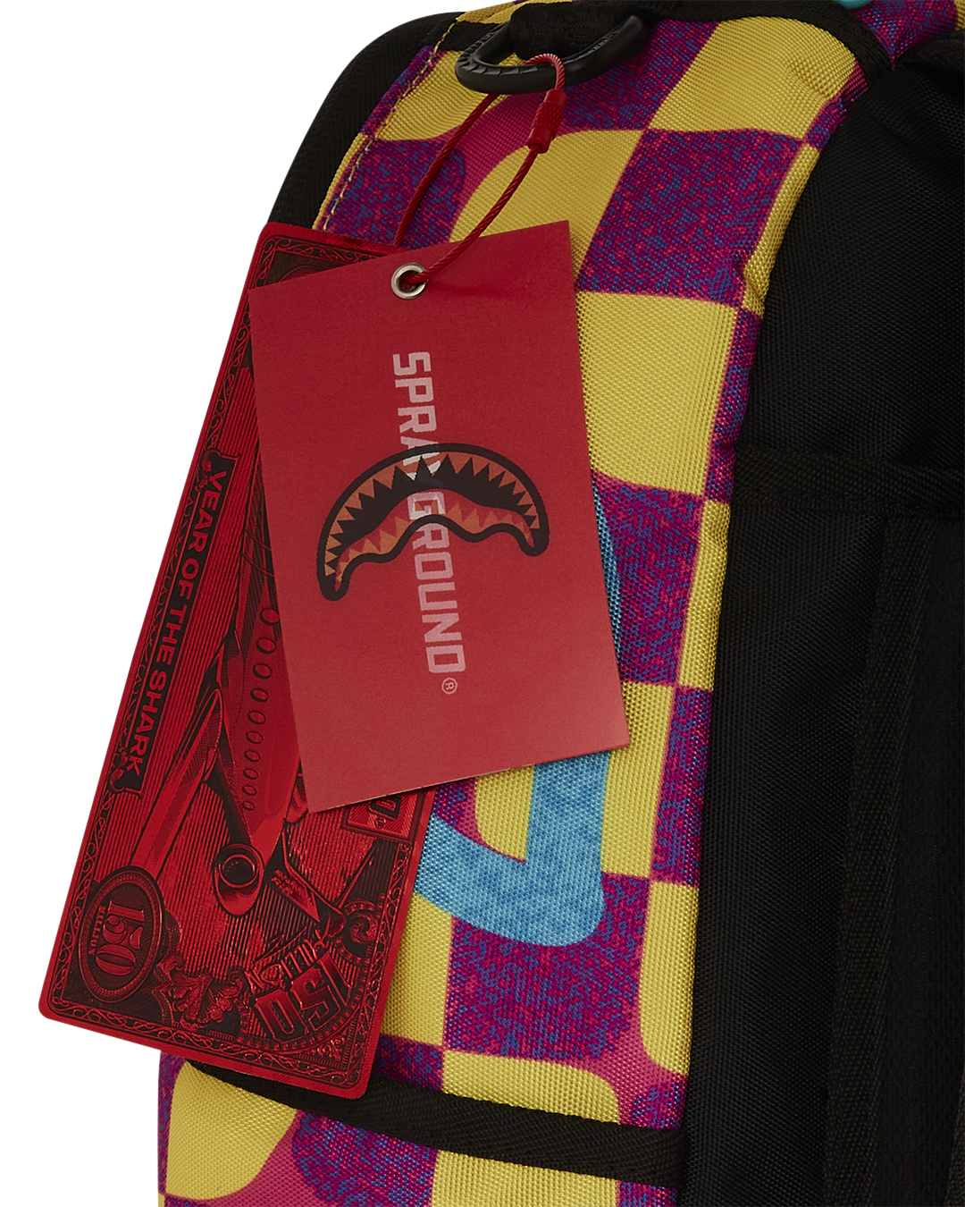 Dimensions: 18″ x 6″ x 11.5″ • Front zipper pocket • Side pockets • Zippered Stash pocket • Separate velour sunglass compartment • Ergonomic mesh back padding • Adjustable Straps for custom sizing • Gold zippers with metal hardware • Metal “Sprayground Authentic” badge • Slide through back sleeve connects to carry-on luggage to free your hands