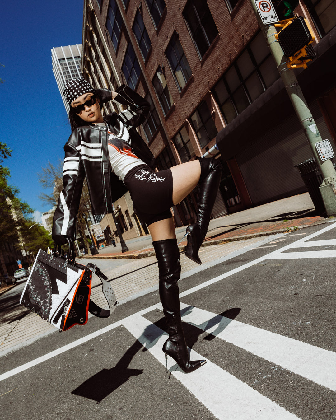 Mix of canvas and pvc, studs, cut and sew detailing