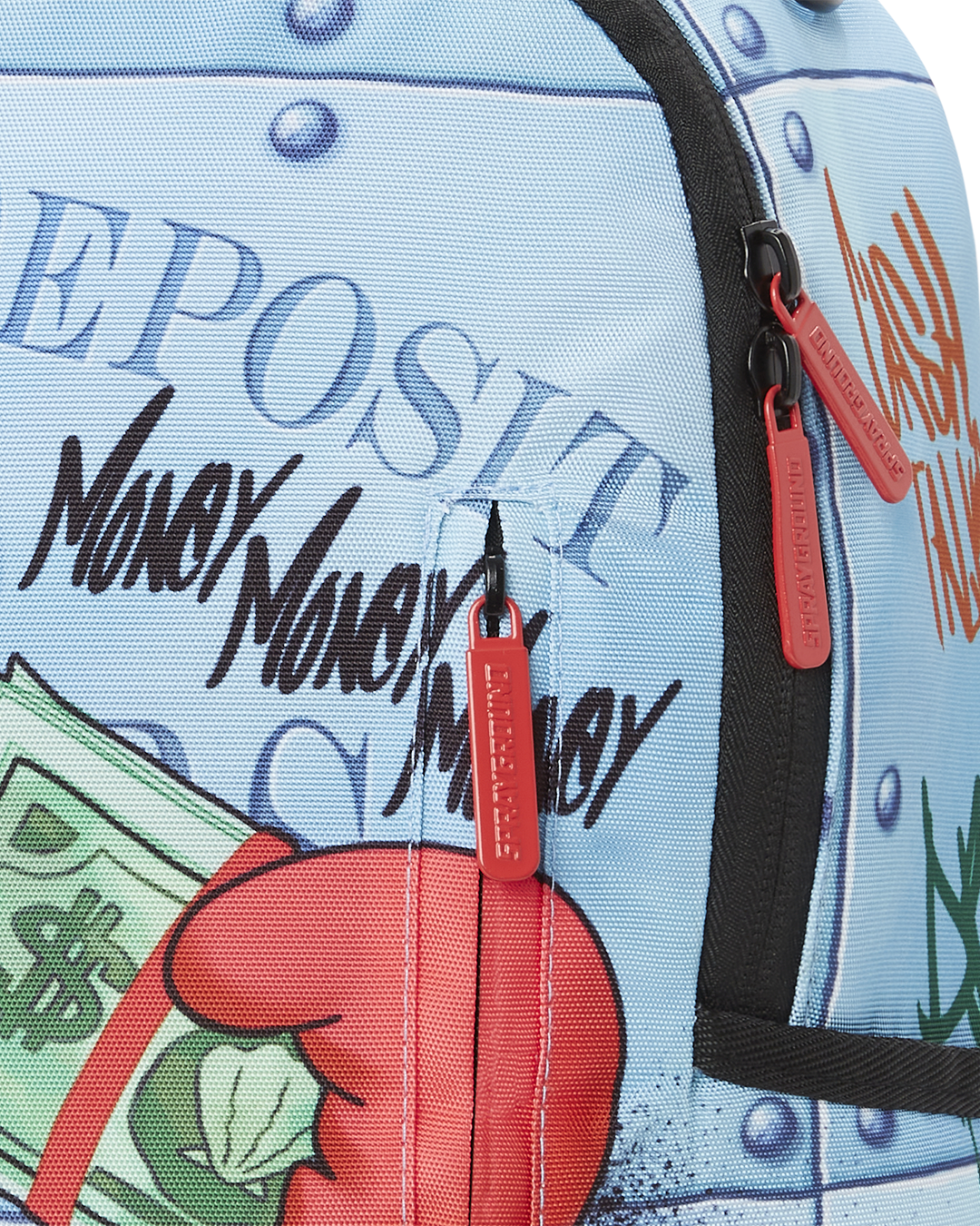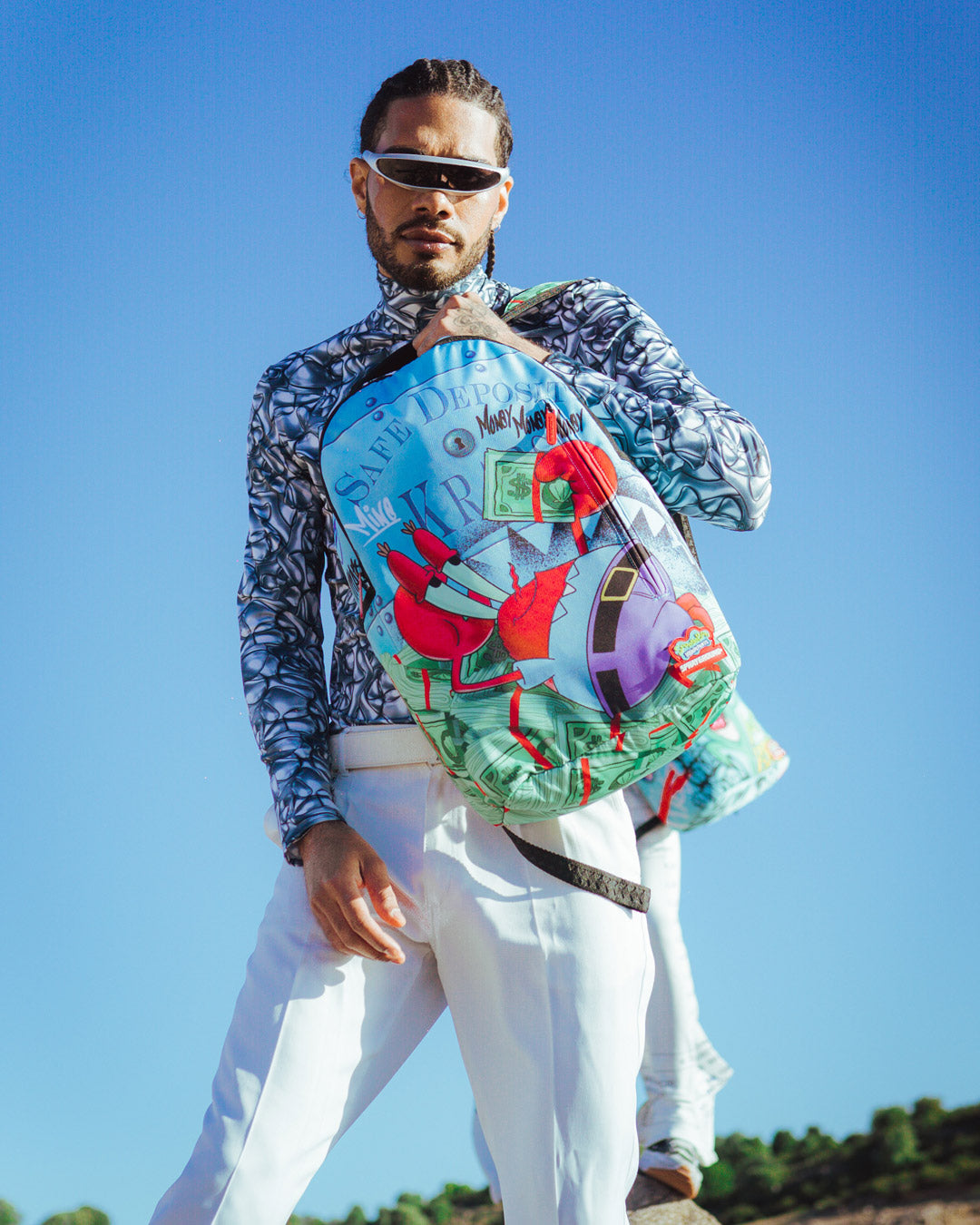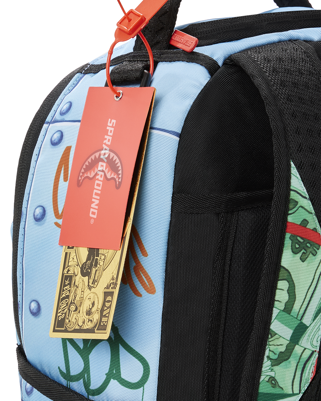 Dimensions: 18″ x 6″ x 11.5″ • Front zipper pocket • Side pockets • Zippered Stash pocket • Separate velour sunglass compartment • Ergonomic mesh back padding • Adjustable Straps for custom sizing • Green zippers with metal hardware • Metal “Sprayground Authentic” badge • Slide through back sleeve connects to carry on luggage to free your hands