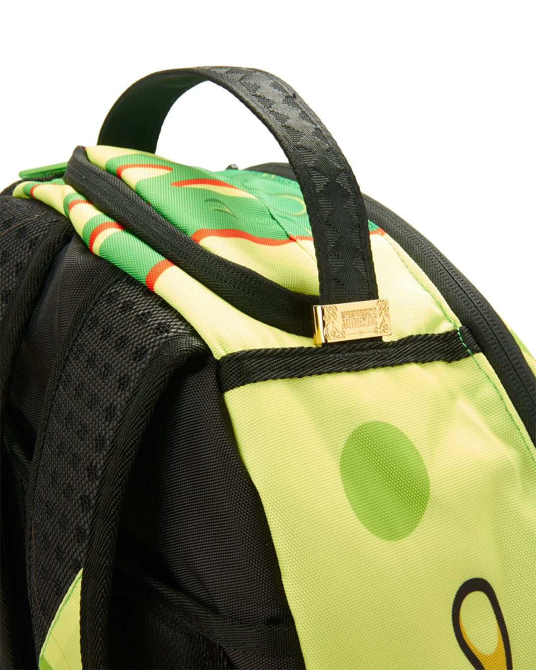 Dimensions: 18″ x 6″ x 11.5″ ∙ Front zipper pocket ∙ Side pockets ∙ Zippered Stash pocket ∙ Ergonomic mesh back padding ∙ Adjustable Straps for custom sizing ∙ Nylon Zippers with Metal Hardware ∙ Metal “Sprayground Authentic” badge ∙ Slide through back sleeve connects to Carry on luggage to free your hands