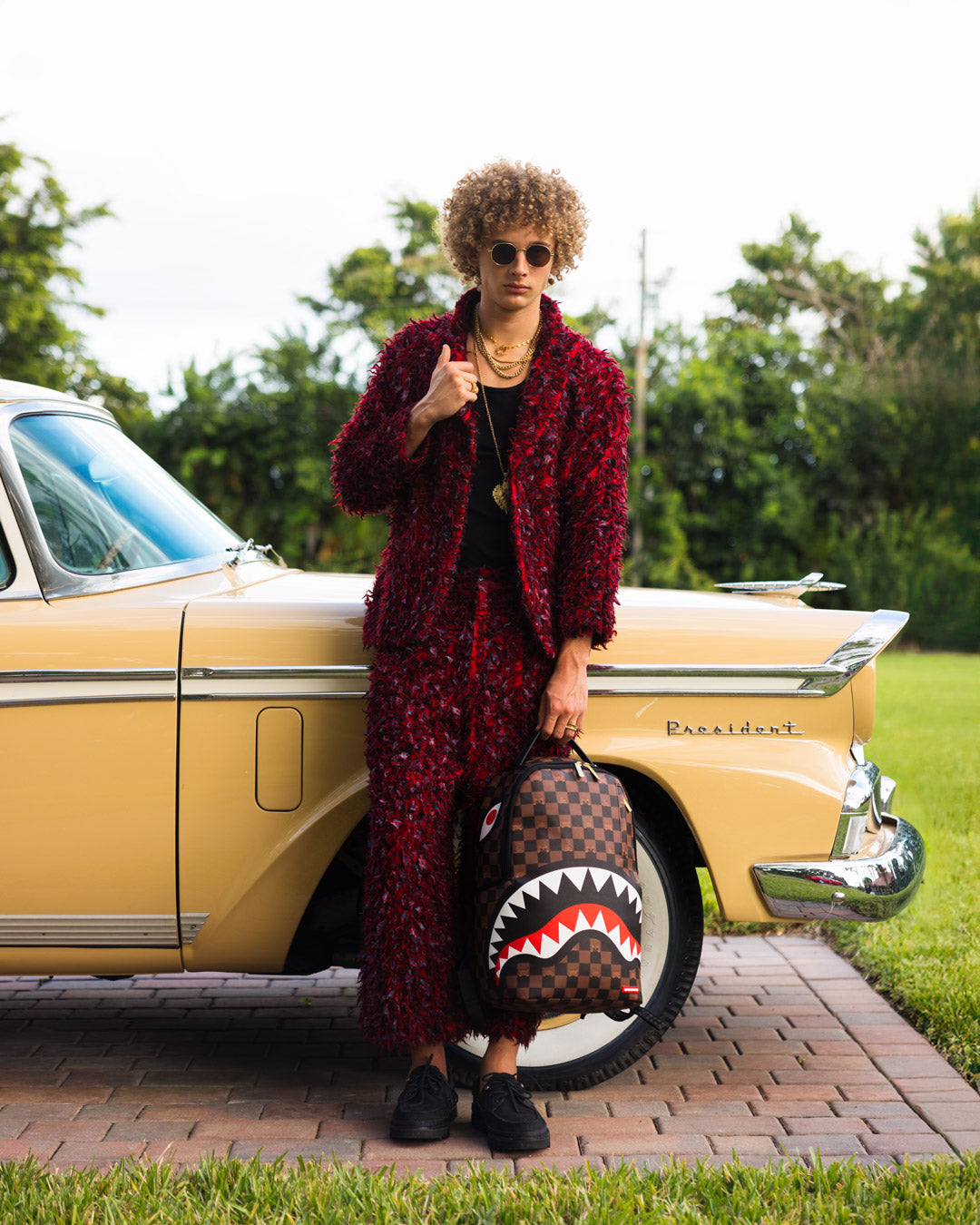Dimensions: 18″ x 6″ x 11.5″ • Front zipper pocket • Side pockets • Zippered Stash pocket • Separate velour sunglass compartment • Ergonomic mesh back padding • Adjustable Straps for custom sizing • Gold zippers with metal hardware • Metal “Sprayground Authentic” badge • Slide through back sleeve connects to carry-on luggage to free your hands