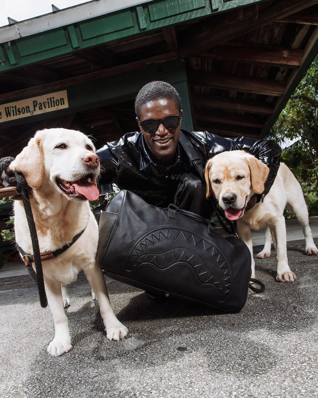 Cut and sew sharkmouth shape with embossed silver foil lettering