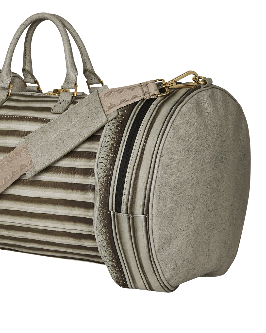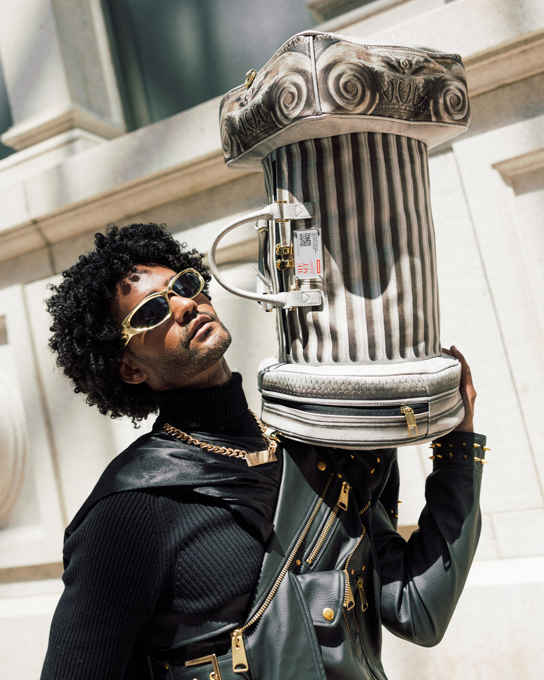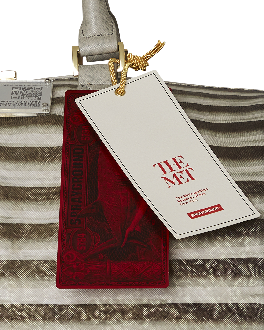 The massive section of a column (ca. 300 BCE) from the Greek Temple of Artemis at Sardis is transformed into a Sprayground duffle bag. The column has been turned on its side and adapts the delicate foliate carvings on its capital—a unique characteristic among extant capitals from the temple. Though the original column once towered at over 58 feet high, its capital is slightly smaller than others found at the site.