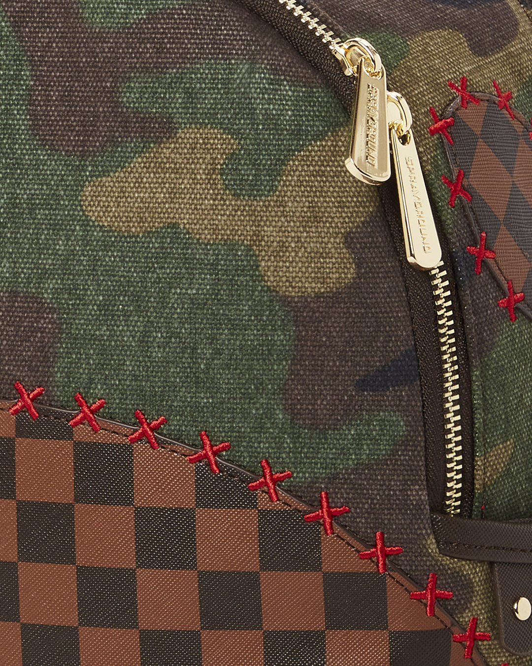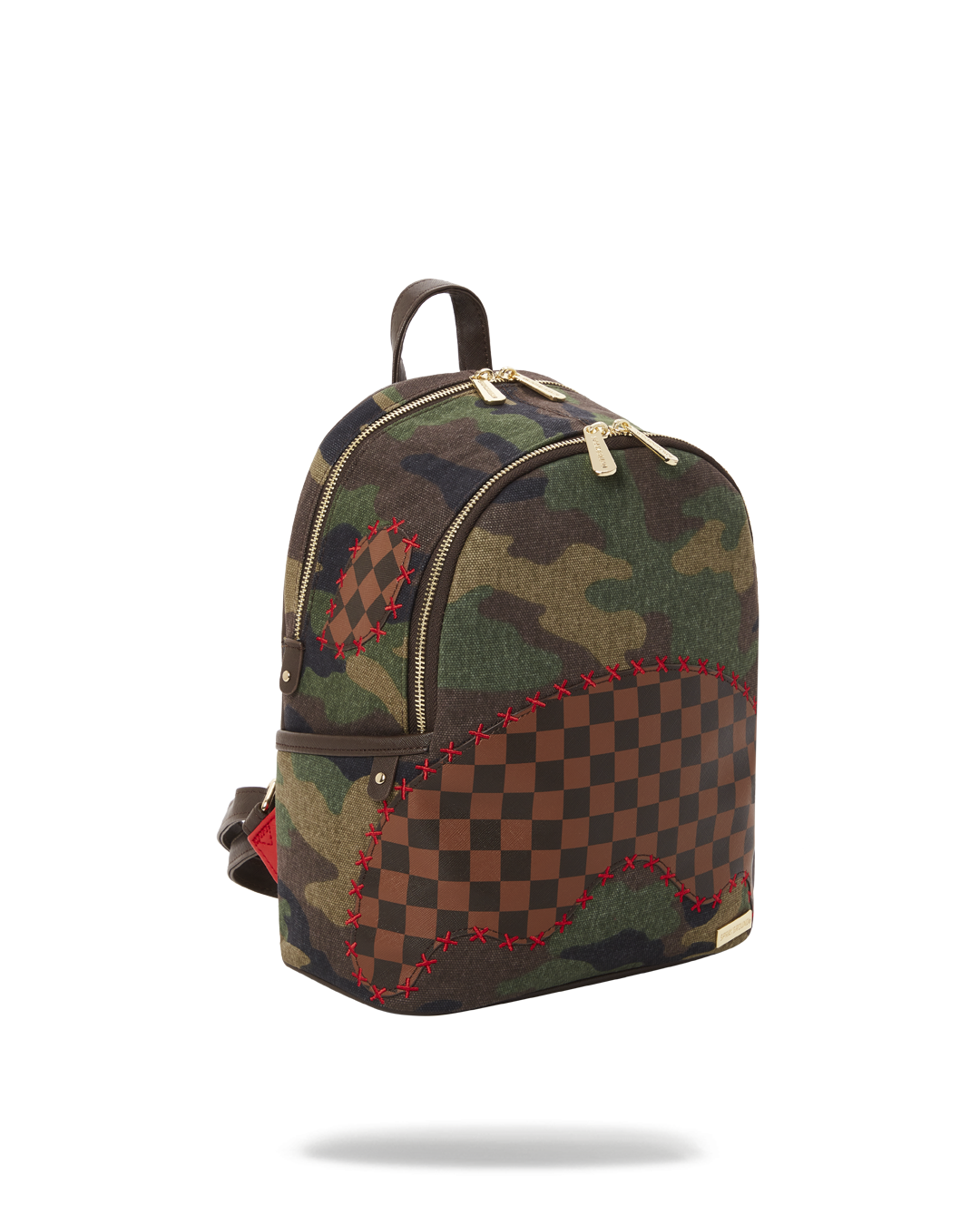 Dimensions: 10″ x 5″ x 11.5″ • Two large main zippered compartments • Side pockets • Zippered Stash pocket • Adjustable straps for custom sizing • Gold zippers with metal hardware